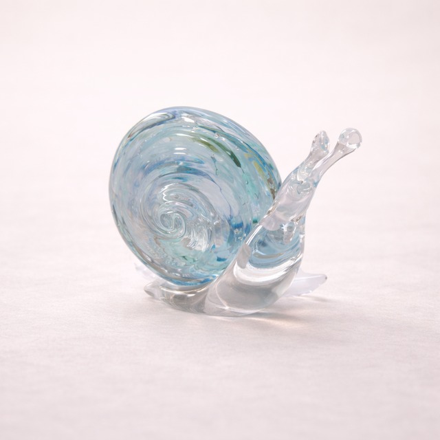春の雨は、音もなく降ります。 傘をさすほどでもない、 ただしっとりと空気が濡れて、 世界が少し青くなるような日。 窓の外を眺めながら、 お茶をひとつ、淹れたくなります。 青とも緑ともつかない淡い水色が ゆっくりと渦を巻いて、 春雨の午後をそのまま 閉じ込めたようなかたつむりです。 --- ガラスのかたつむり 春雨 サイズ:約 8 × 2.5 × 高さ 5.5 cm 重量:約 250 g 材質:ガラス 原産地:日本 --- ガラスかたつむりの他の器はこちら https://tsunetanaka.thebase.in/search?q=かたつむり ---