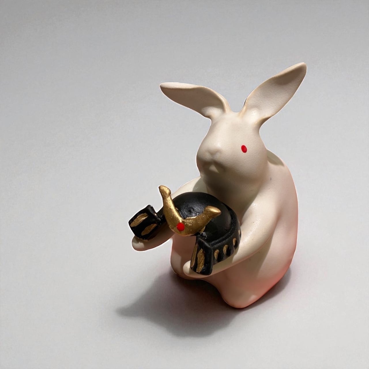 #うさぎ置物 #兜のうさぎ #陶器オブジェ