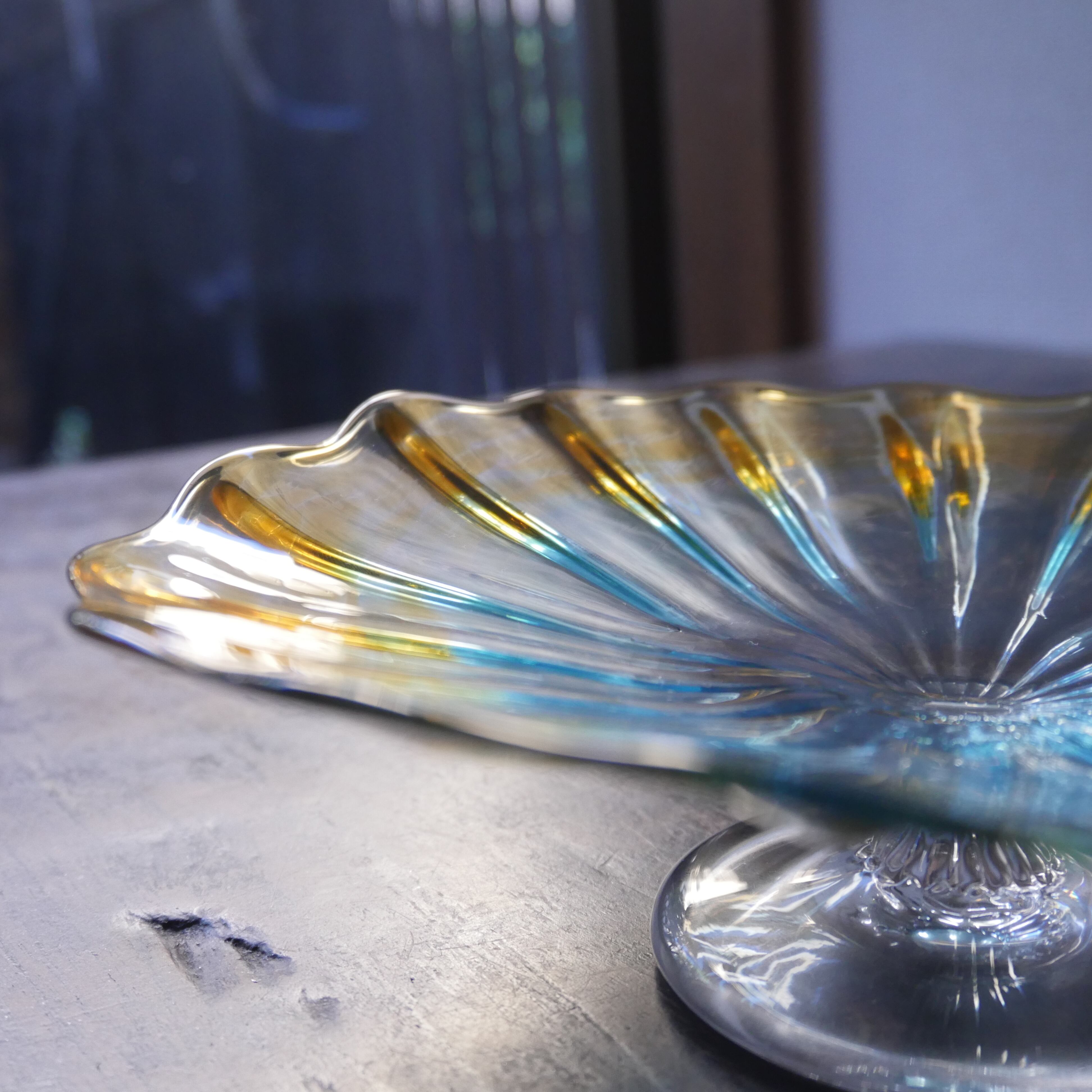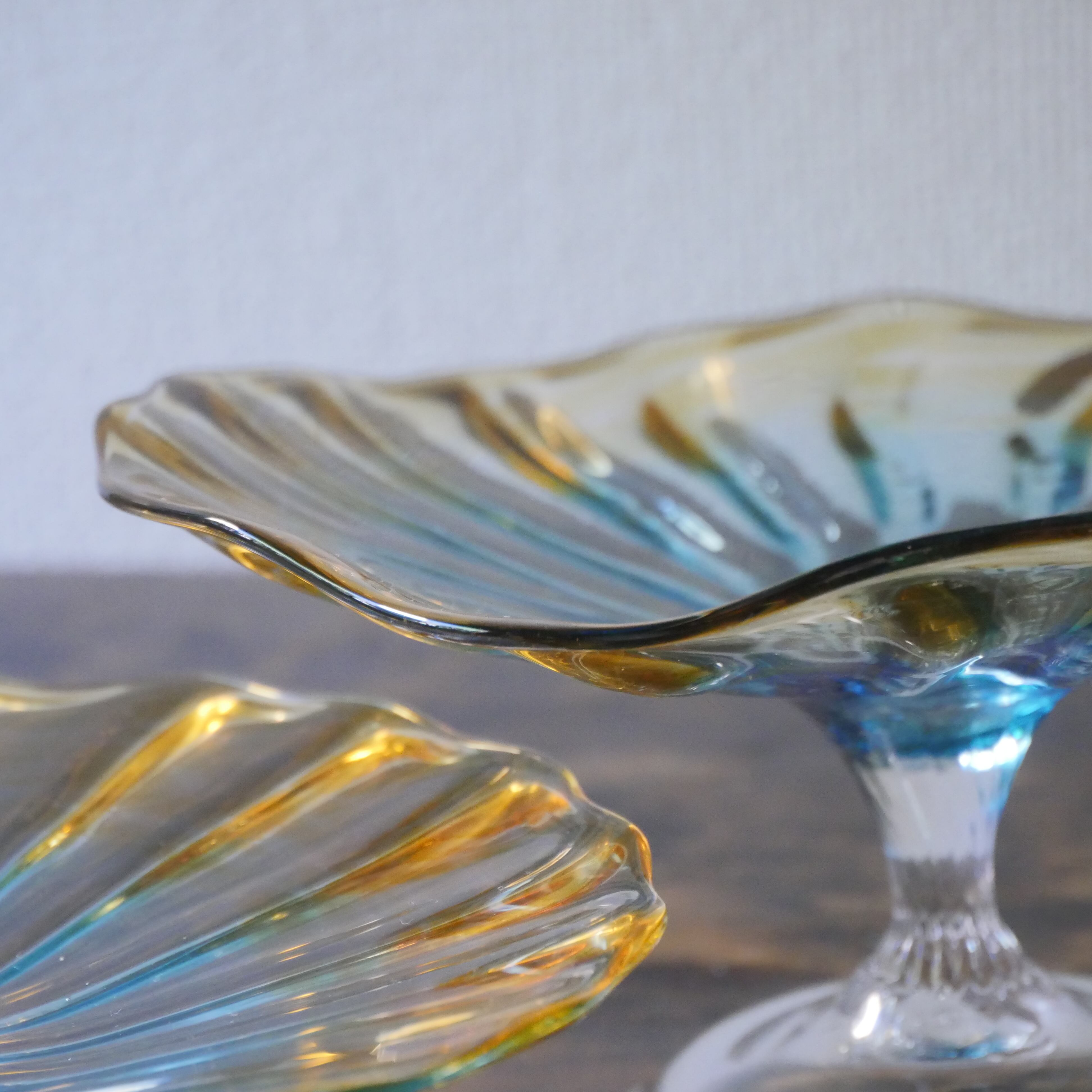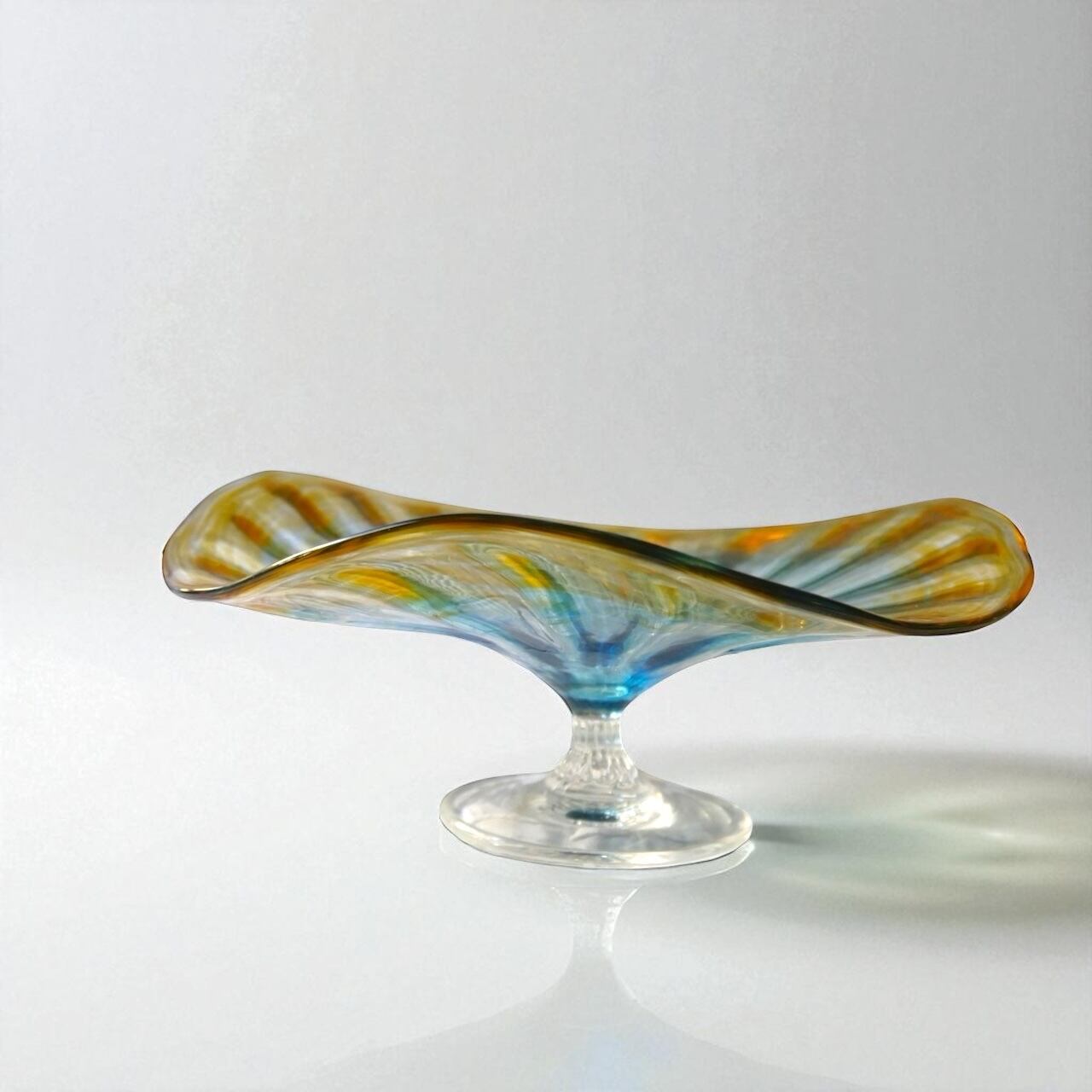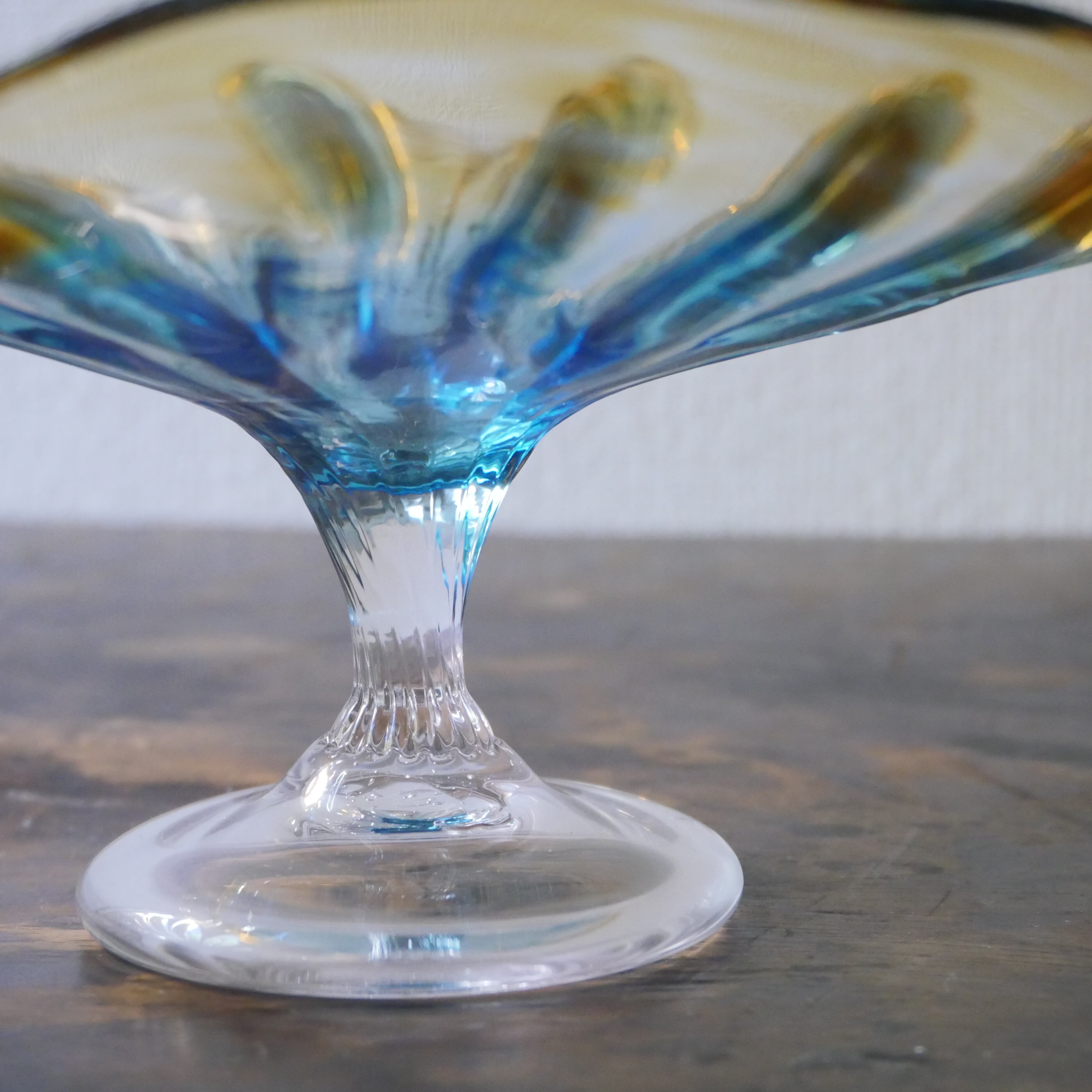 【'25秋】コンポート(高さ 9 cm) ガラス グラデーション ブルーアンバー