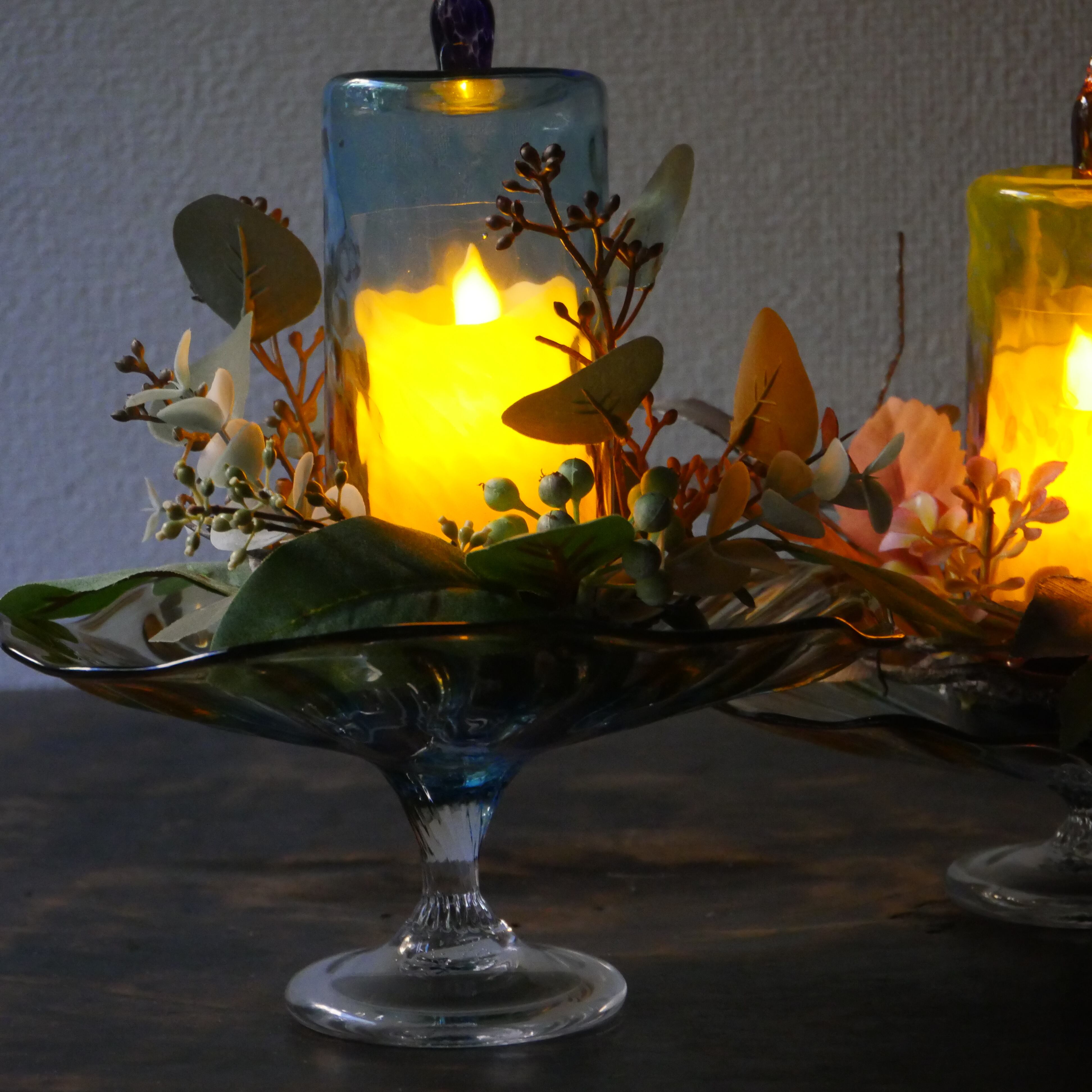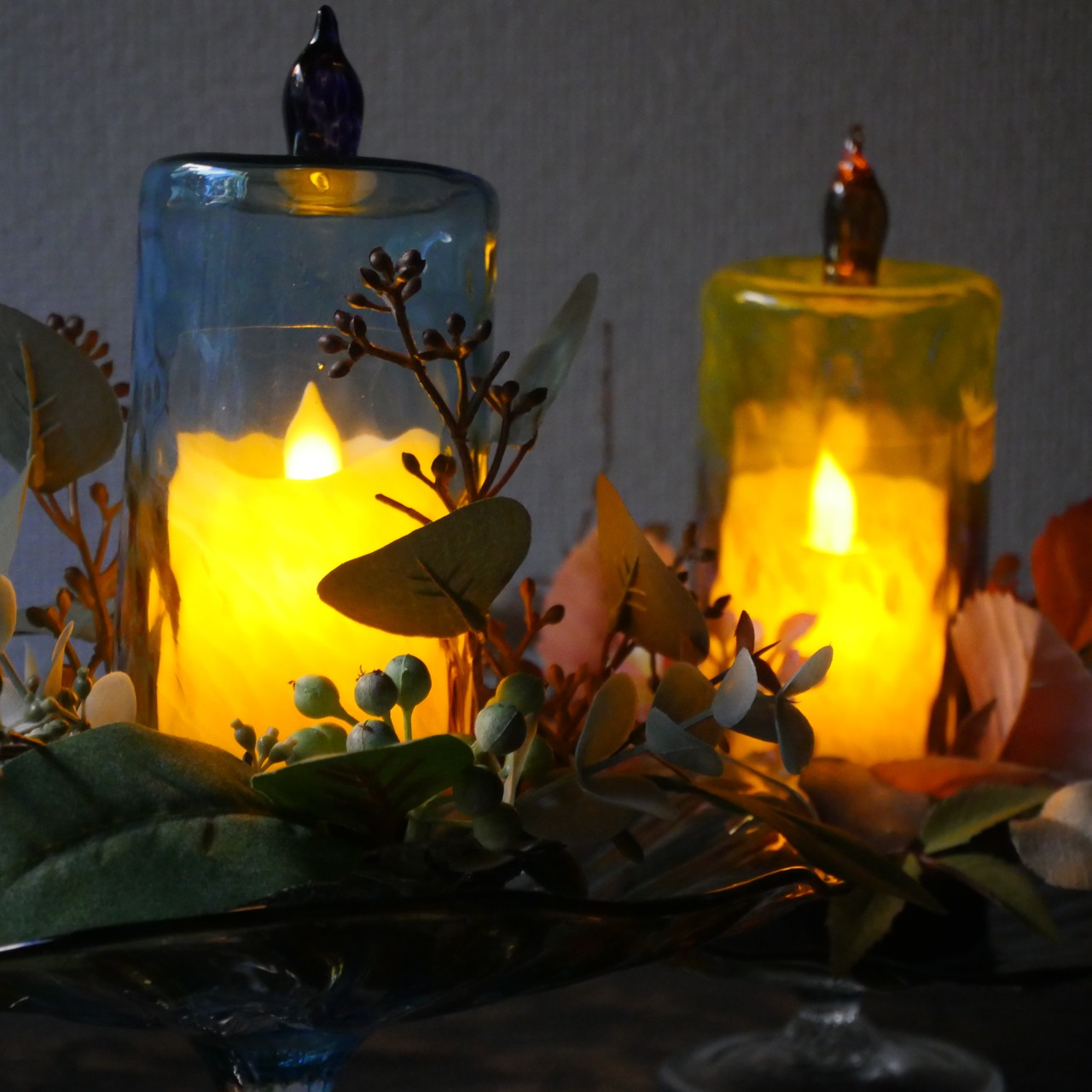 キャンドルのかたちを模した、ガラスのLEDキャンドルホルダーです。