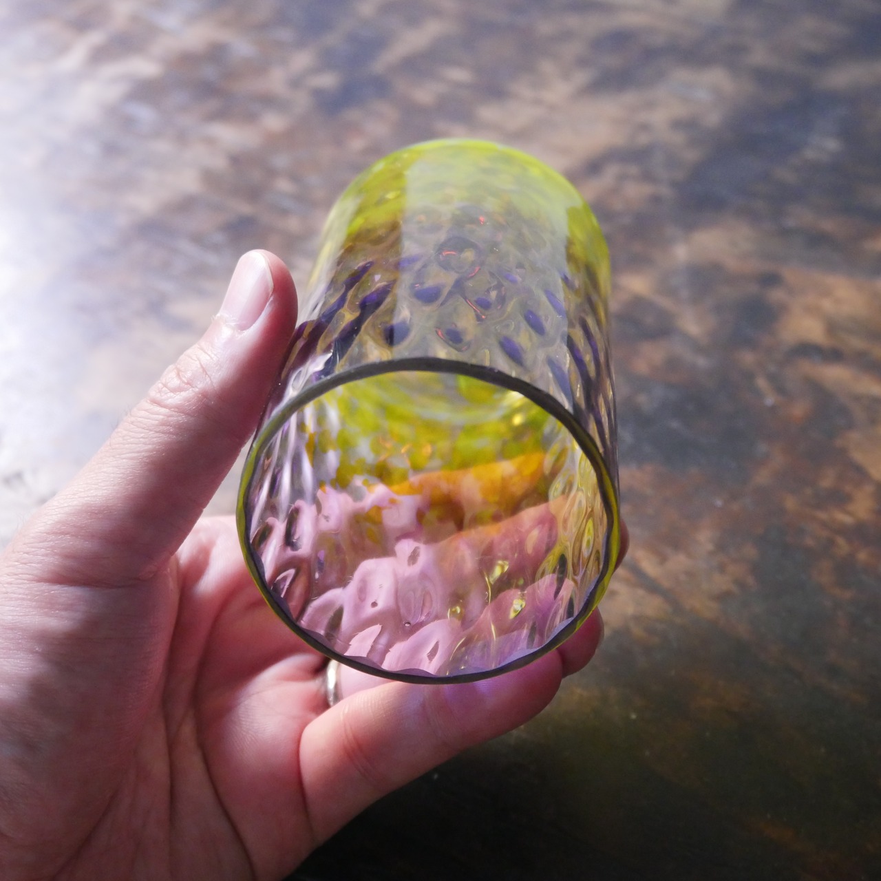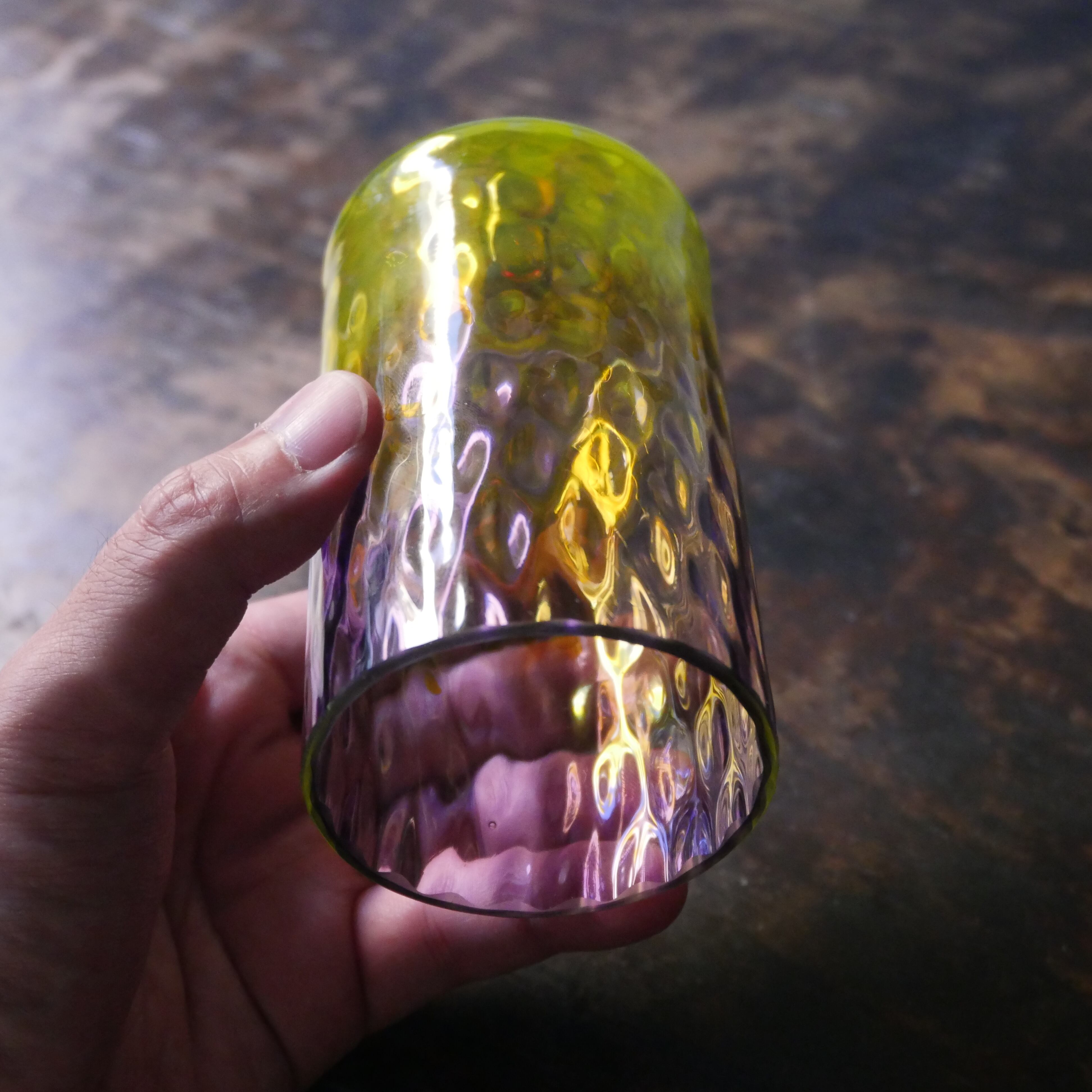 クロスモールという特殊な技法で、ガラスの表面に細かな凹凸をつけています。