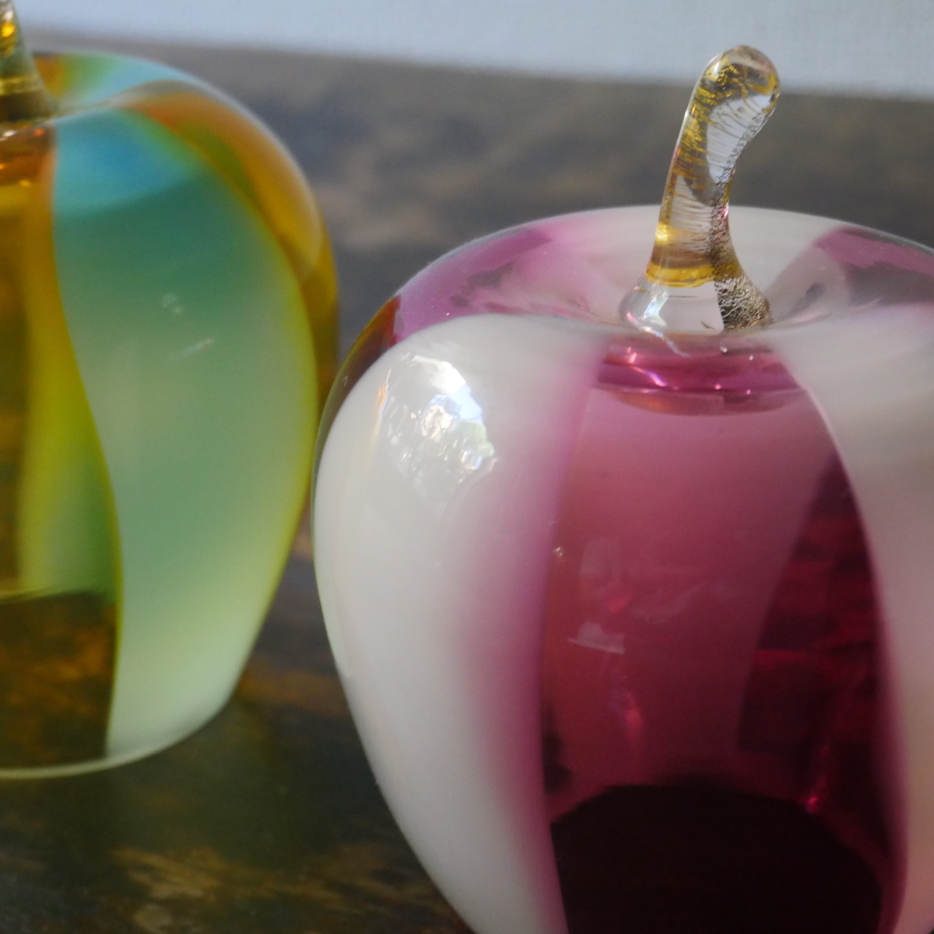 ふたつの表情を楽しめるのも、このガラスりんごならではの魅力です。