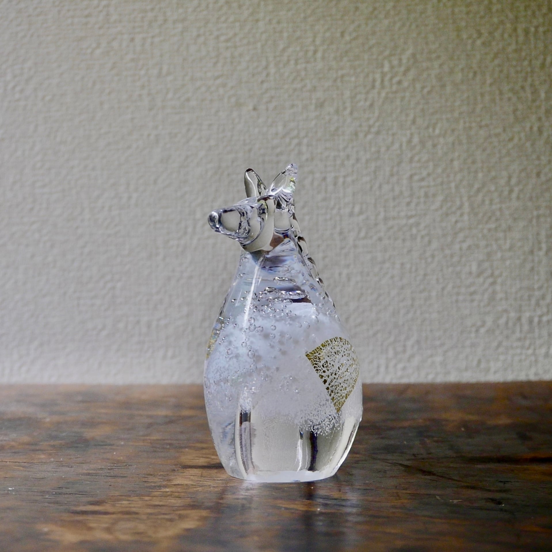 透明なガラスの中に金箔を閉じ込め、清らかで凛とした輝きを宿しています。