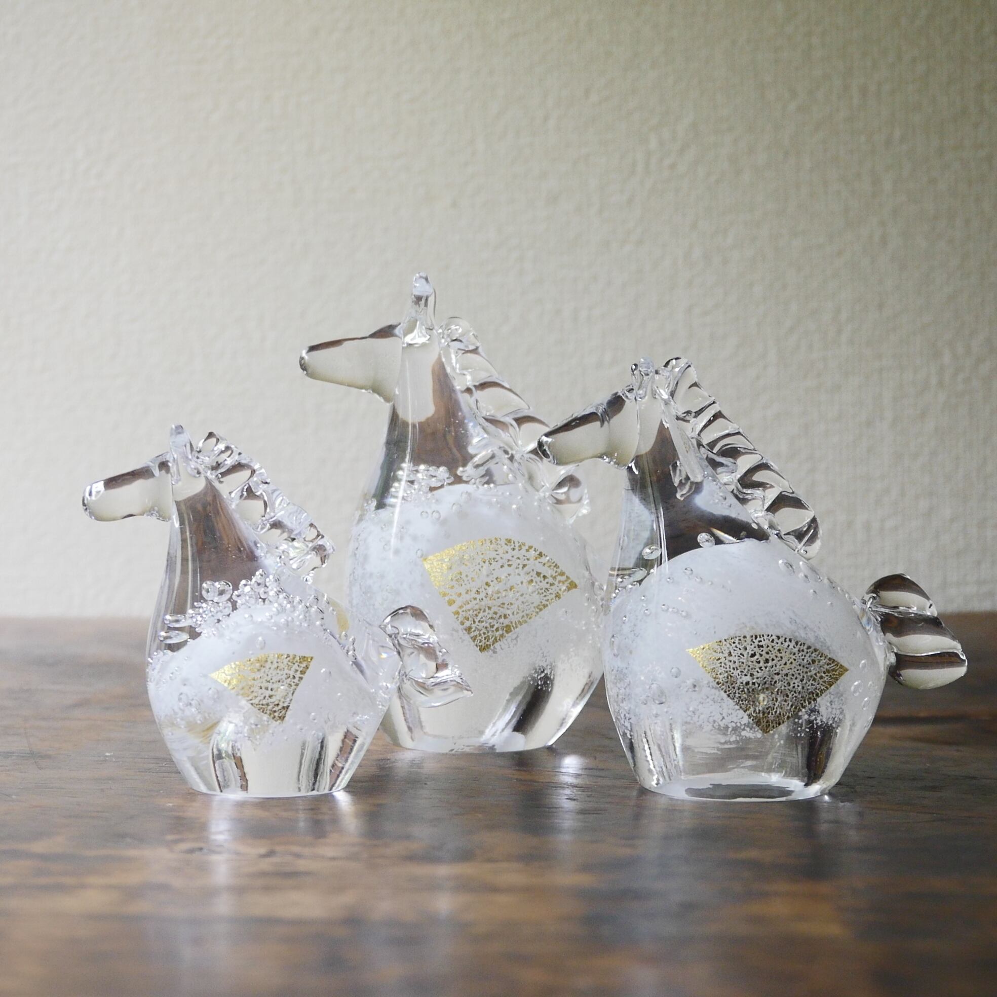 透明なガラスの中に金箔を閉じ込め、清らかで凛とした輝きを宿しています。