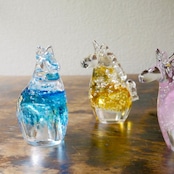 透明なガラスの中に金箔を閉じ込め、清らかで凛とした輝きを宿しています。