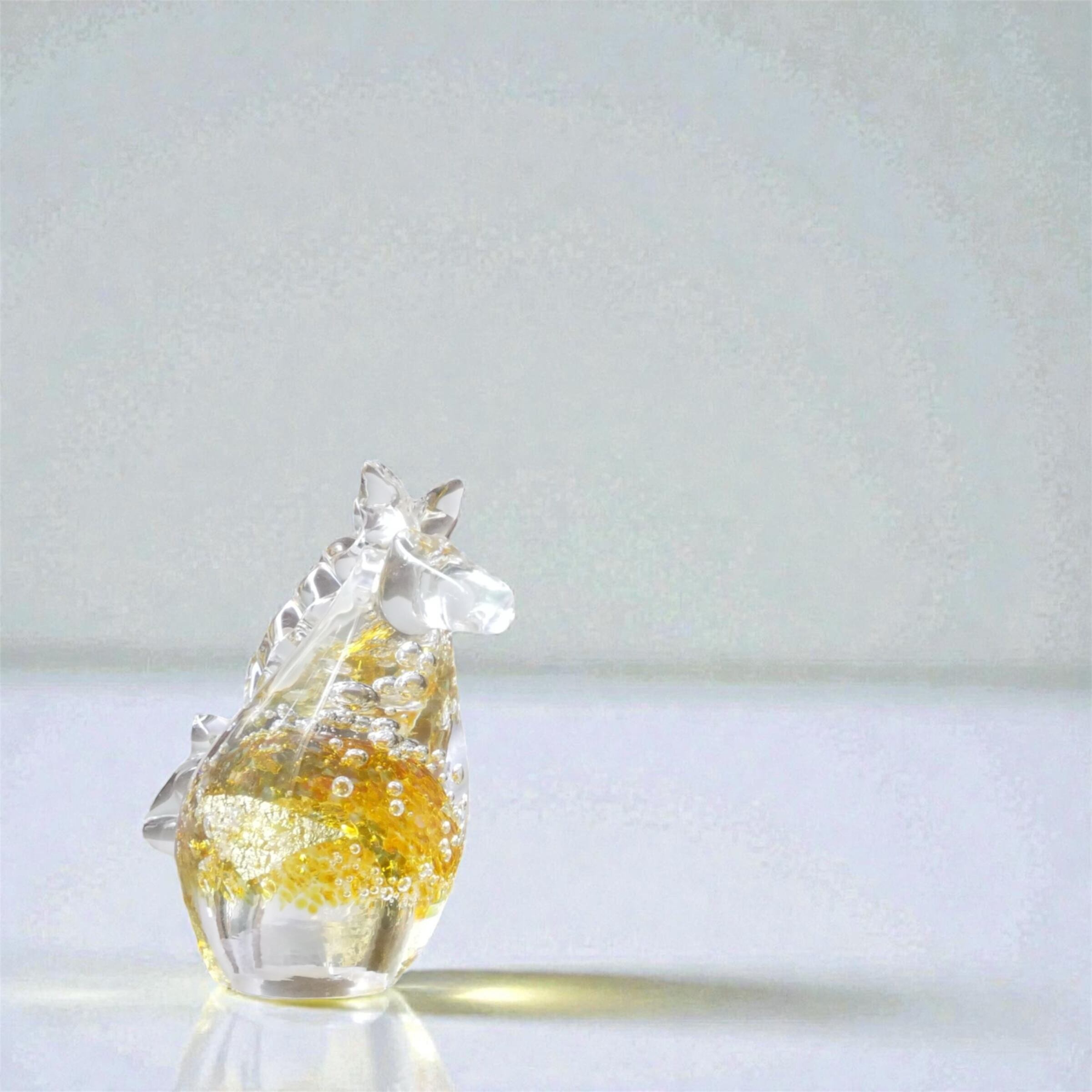 透明なガラスの中に金箔を閉じ込め、清らかで凛とした輝きを宿しています。