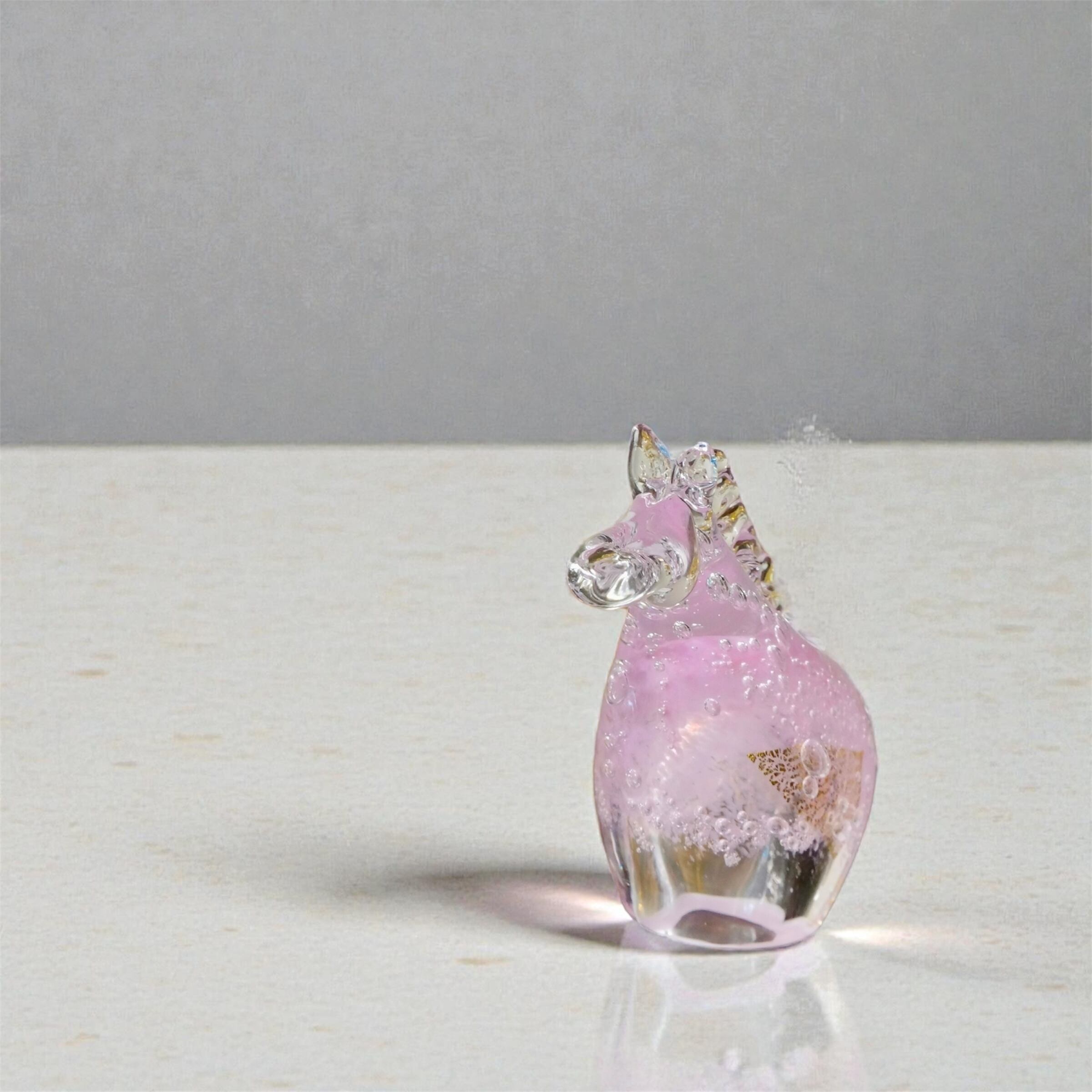 【'25冬】干支(高さ6cm) ガラス午S (桃駒)ミルキーピンク