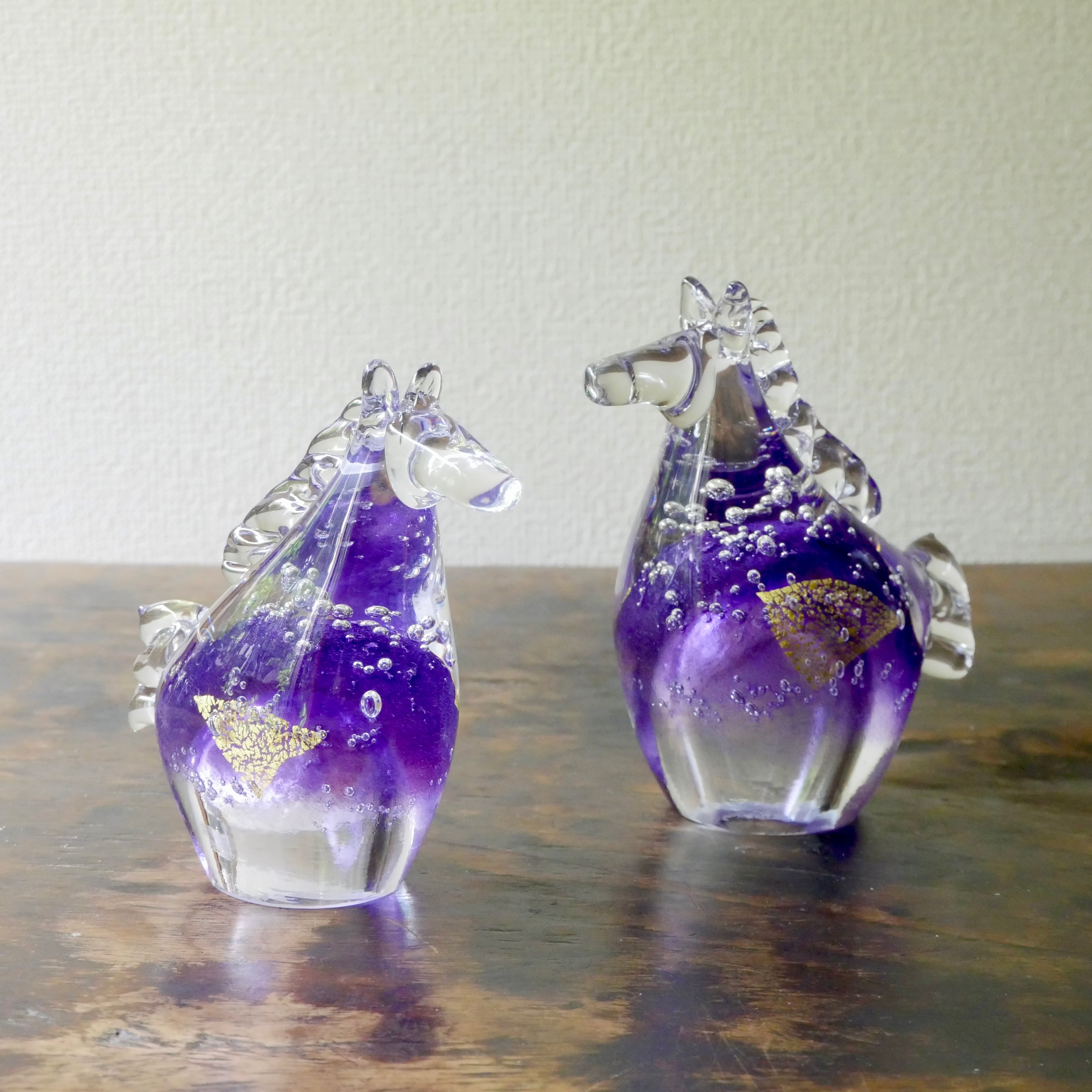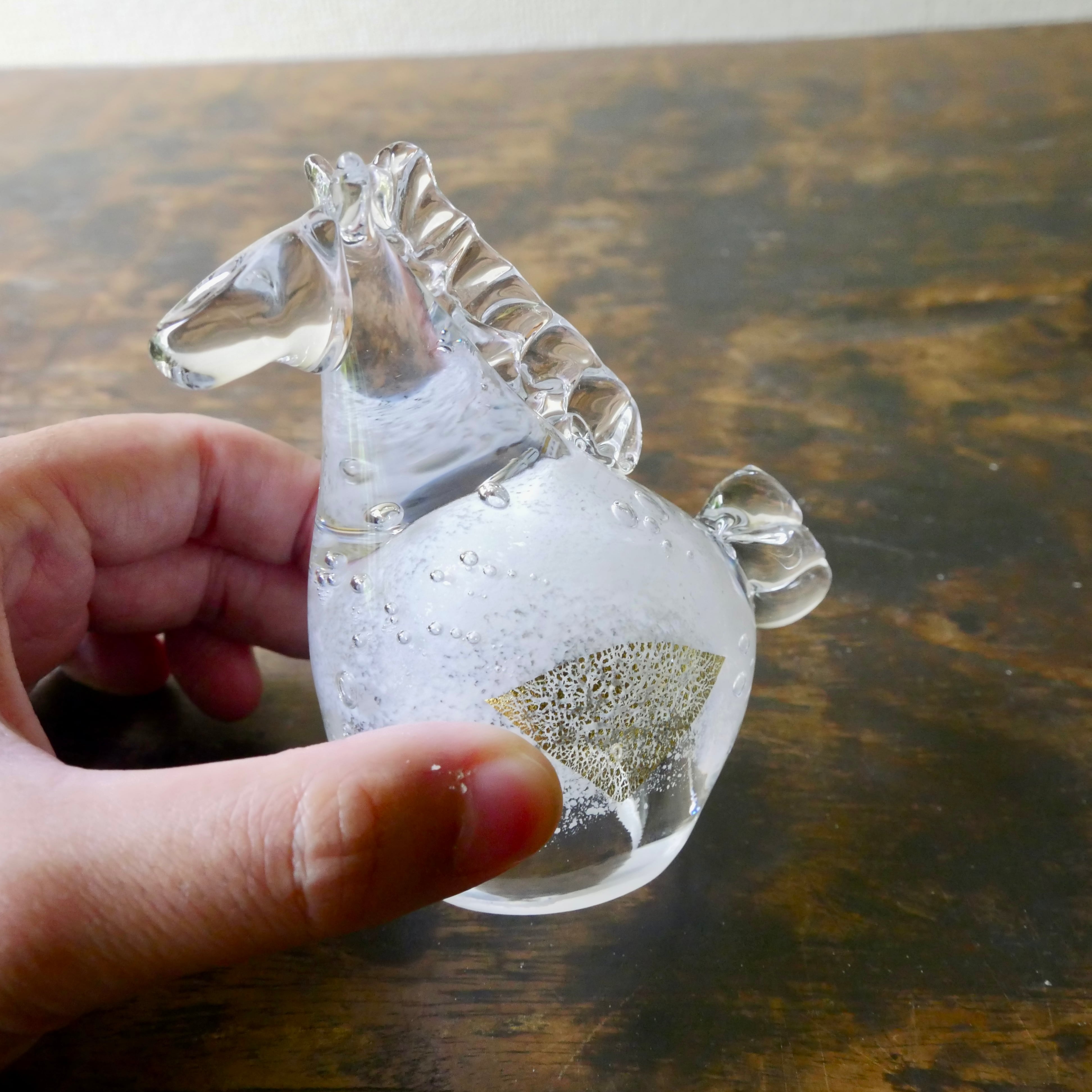 【'25冬】干支(高さ8cm) ガラス午M (金駒)アンバー