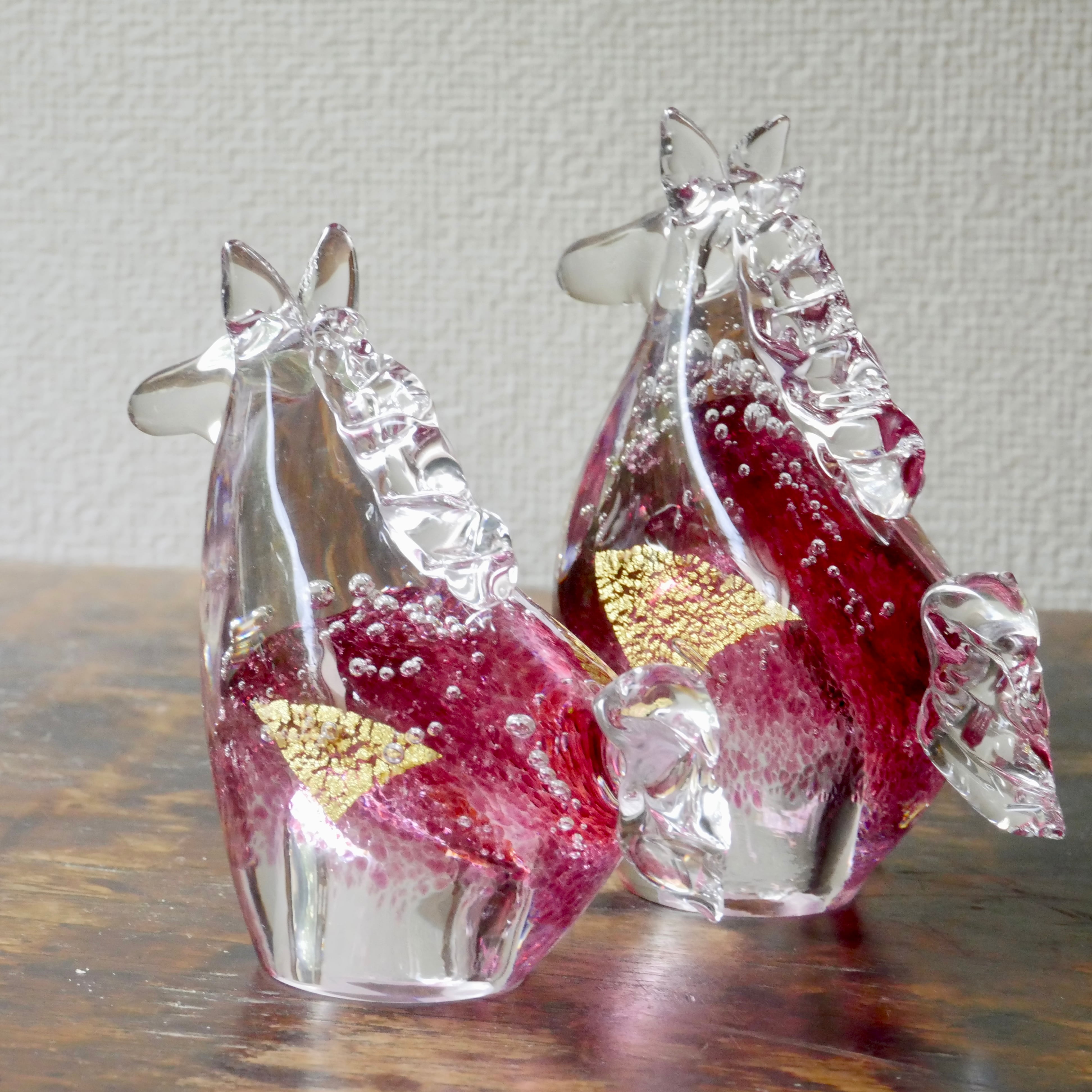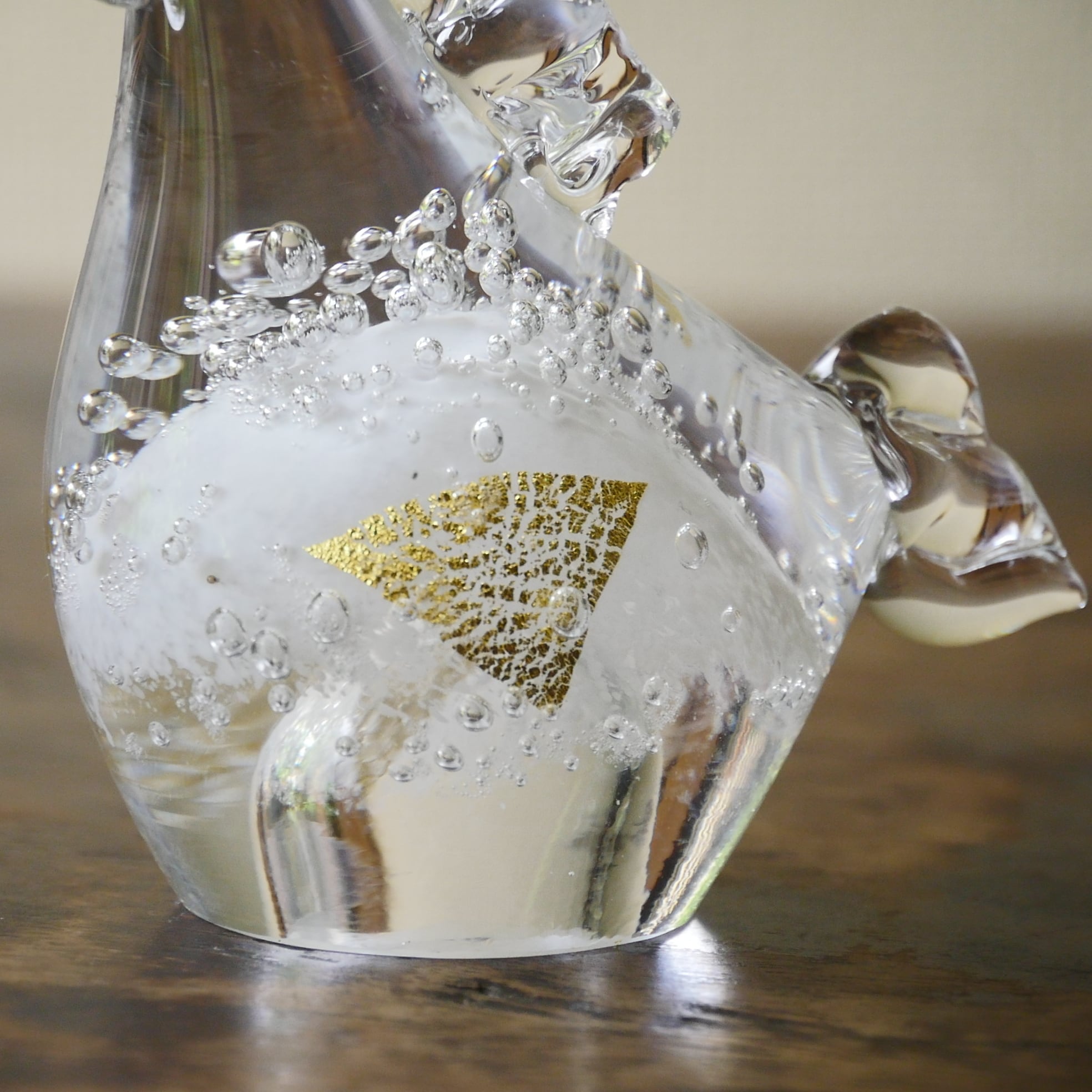 透明なガラスの中に金箔を閉じ込め、清らかで凛とした輝きを宿しています。