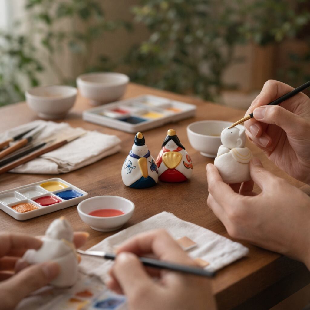 はじめに、まっ白い陶器のお雛様をご用意しています。