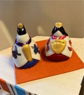 小さなまっ白い陶器のお雛様に、