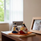 小さなまっ白い陶器のお雛様に、