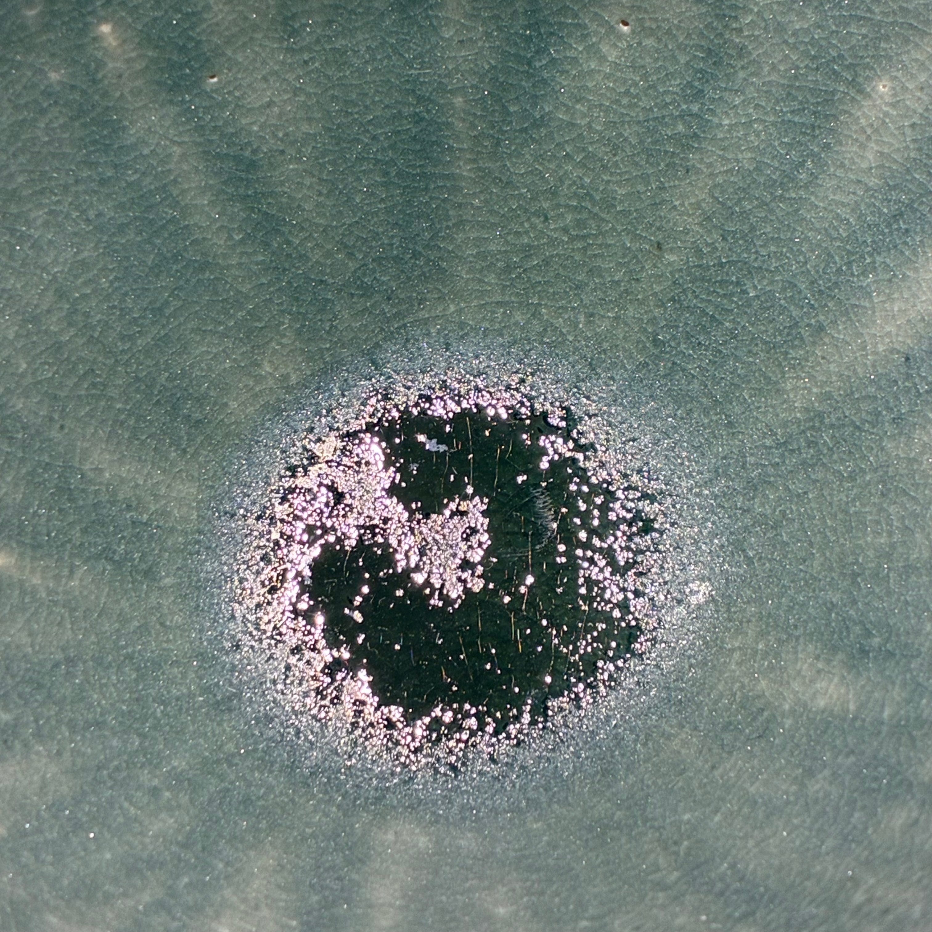 ひとつとして同じものはなく、釉薬の流れ落ちる濃さによって中心に溜まる色合いが変わり、