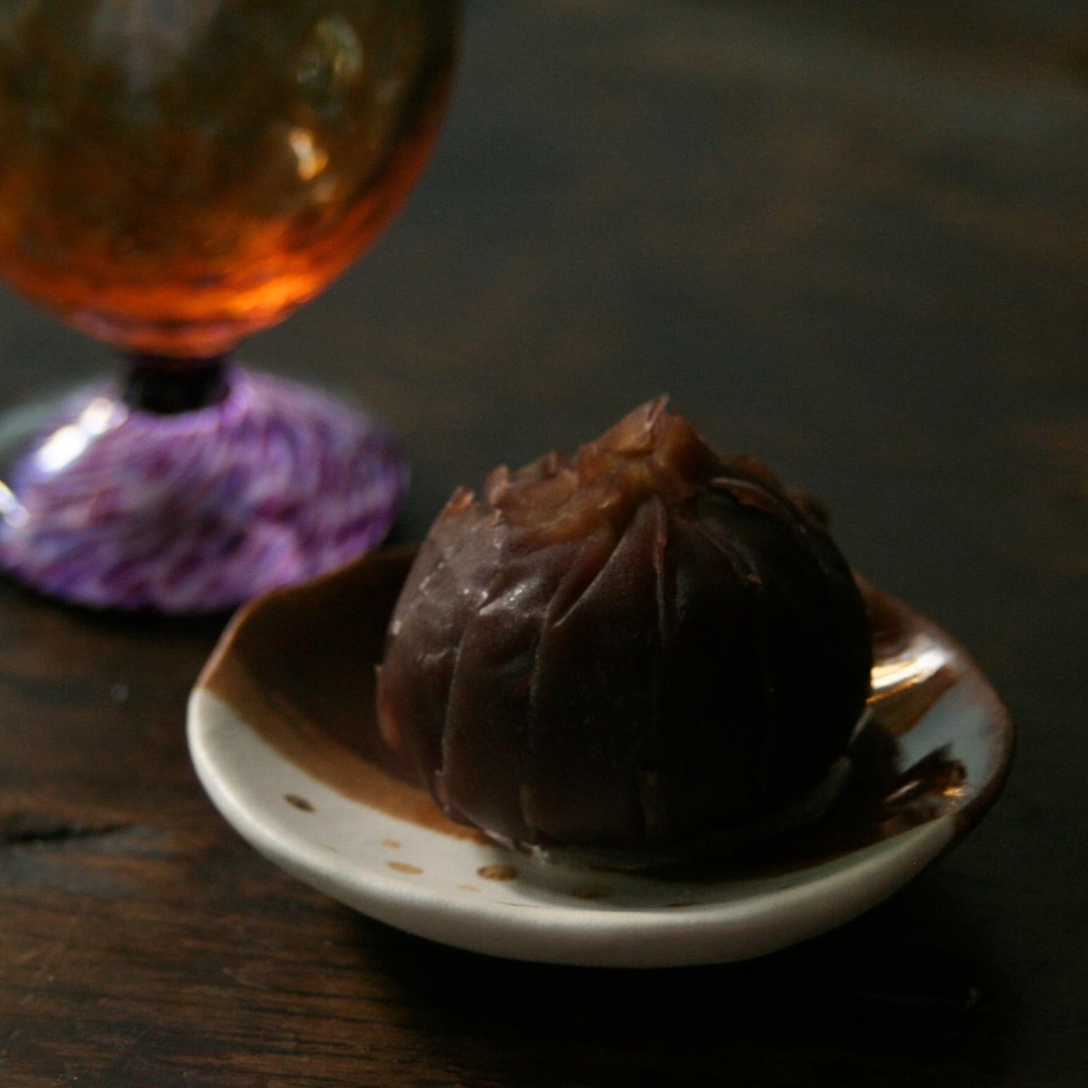 この栗には絶対にこのアメ釉と、やわらかな筆で書くヒゲが外せません。