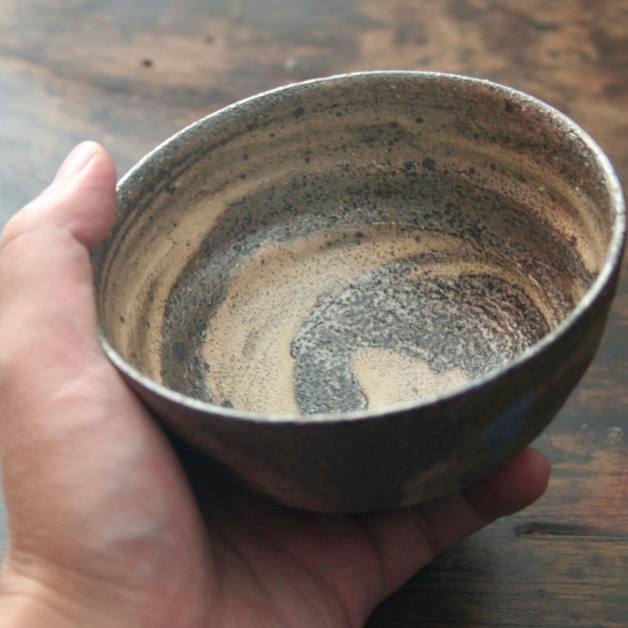 千年以上の歴史を持つ「焼締(やきしめ)」の技法を用い、釉薬をかけずに高温で焼成したご飯茶碗。
