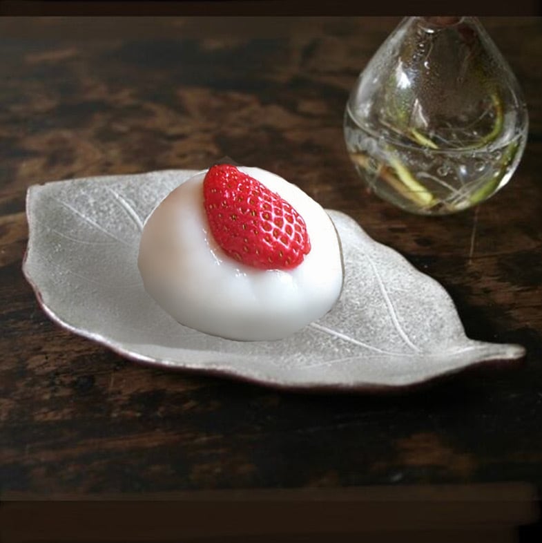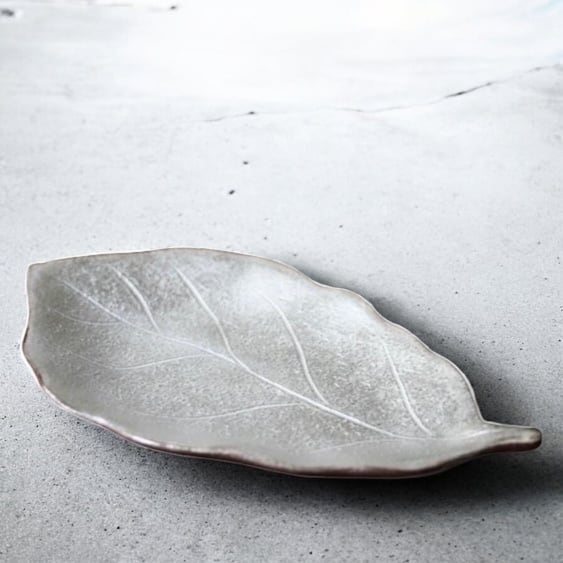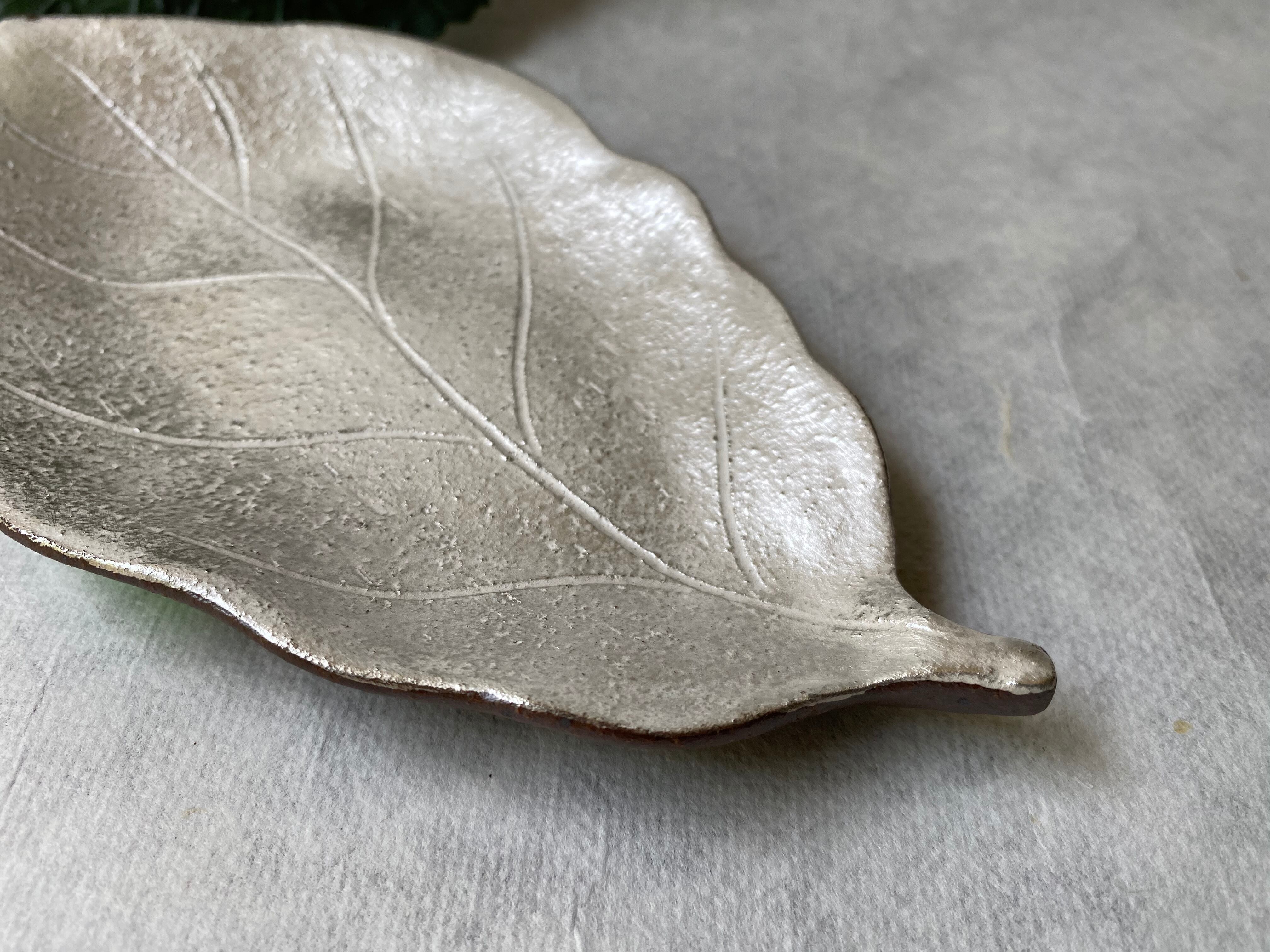 銀彩で仕上げた、柏の葉のかたちの器です。