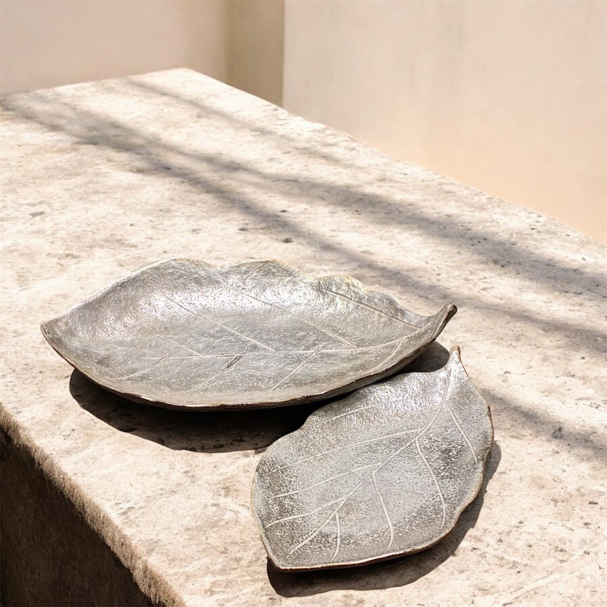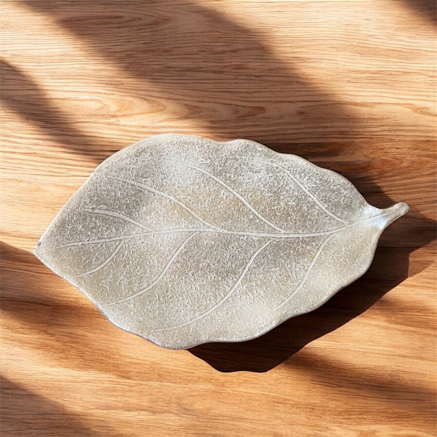 葉皿(幅 17.5 cm) 銀彩 柏の葉