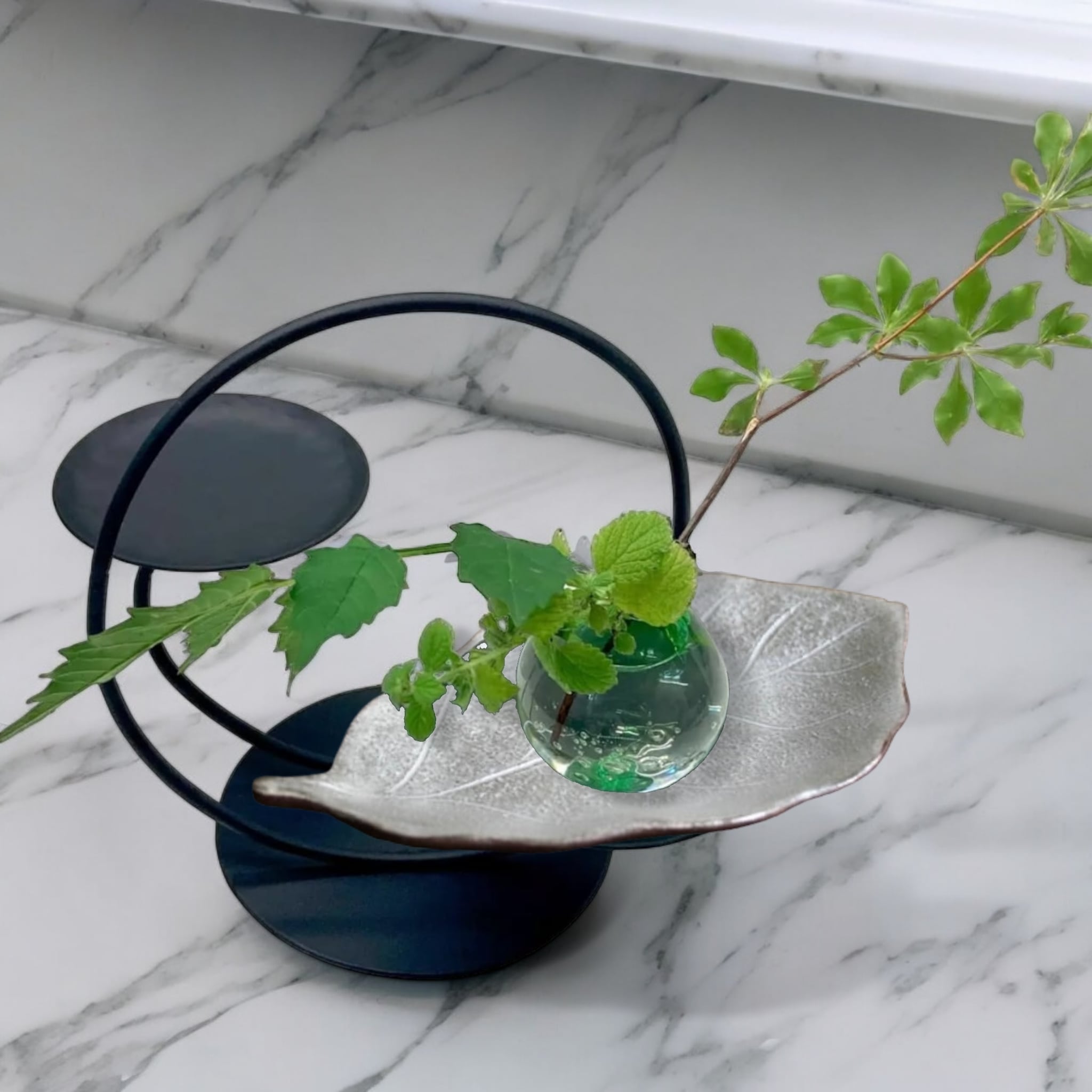 その力強くもしなやかな形を写しとり、流れる葉脈のラインを繊細な手仕事で表現しました。