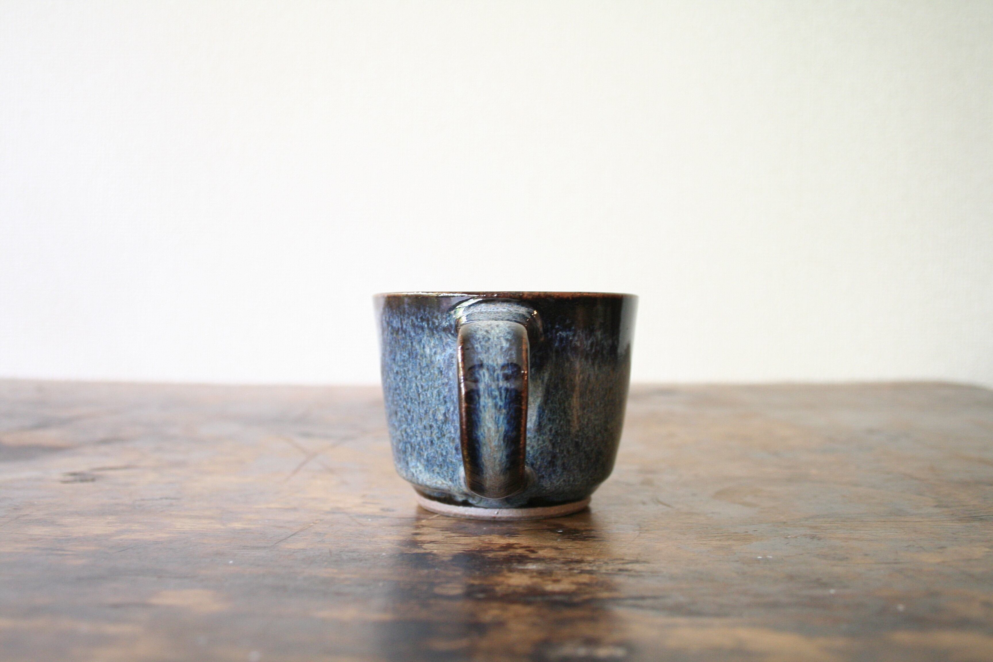 TSUNEの天目釉マグカップ(小サイズ)は、深みのある黒と青が溶け合う独特の色合いが魅力です。