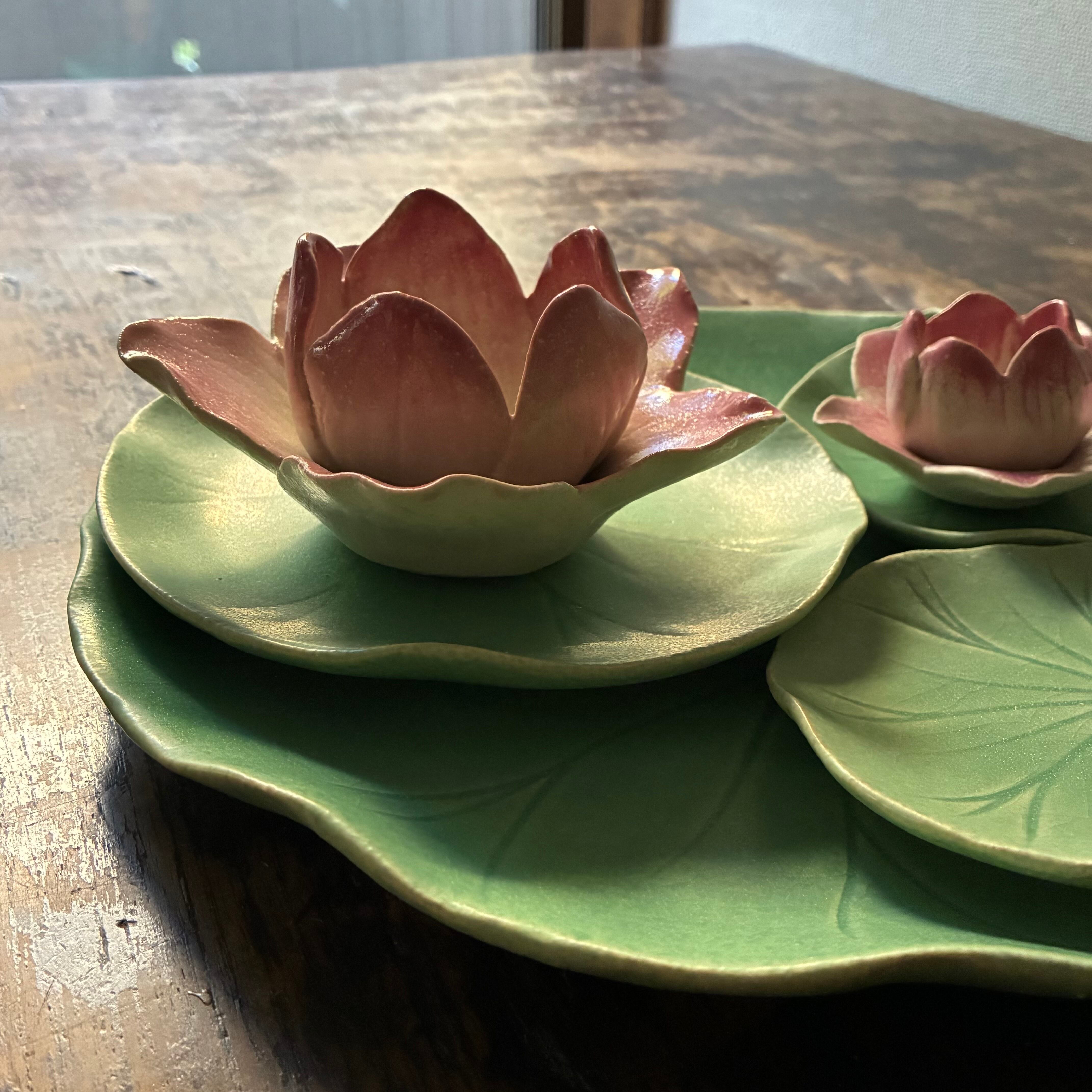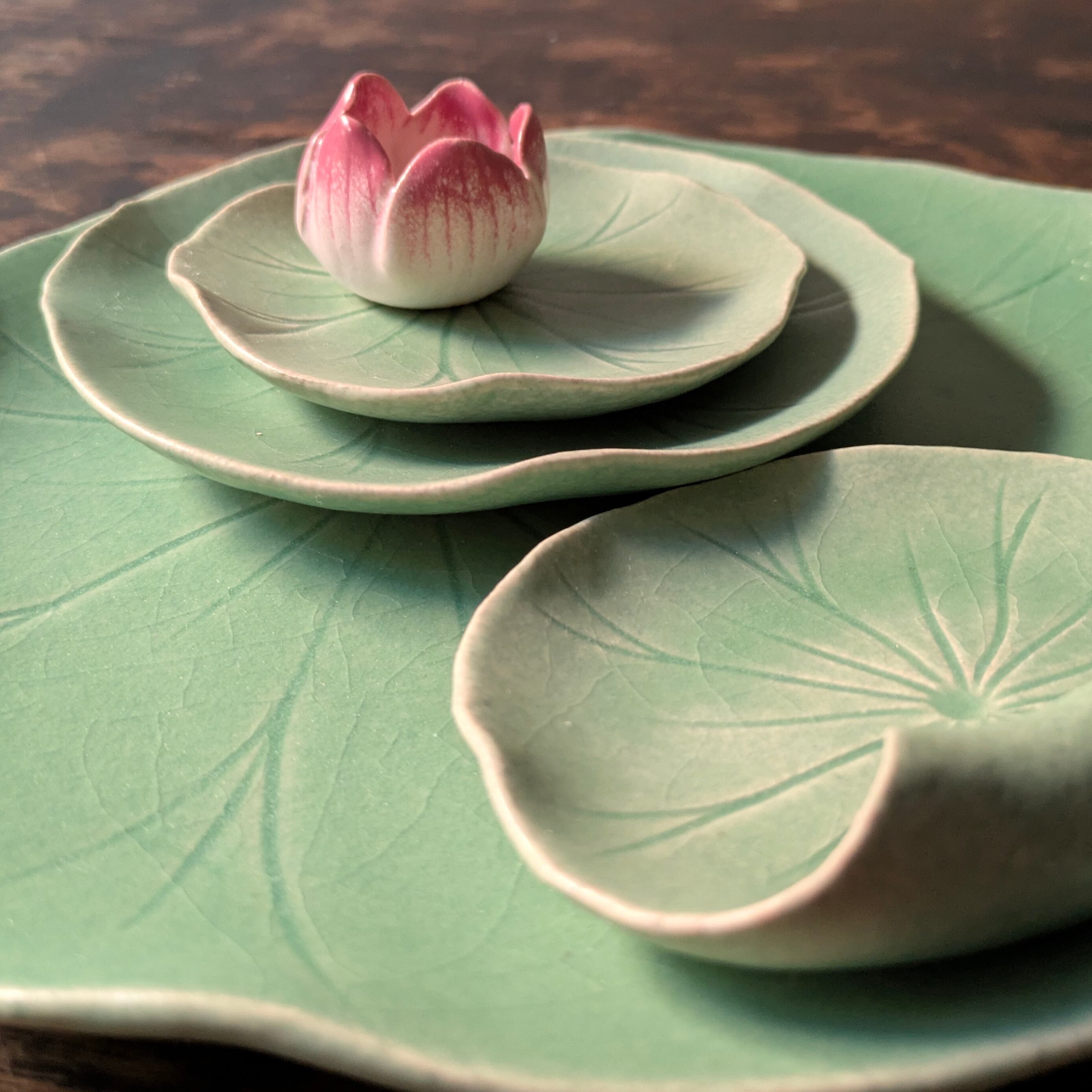 蓮の葉をかたどった、ちいさなちいさな陶器のプレートです。