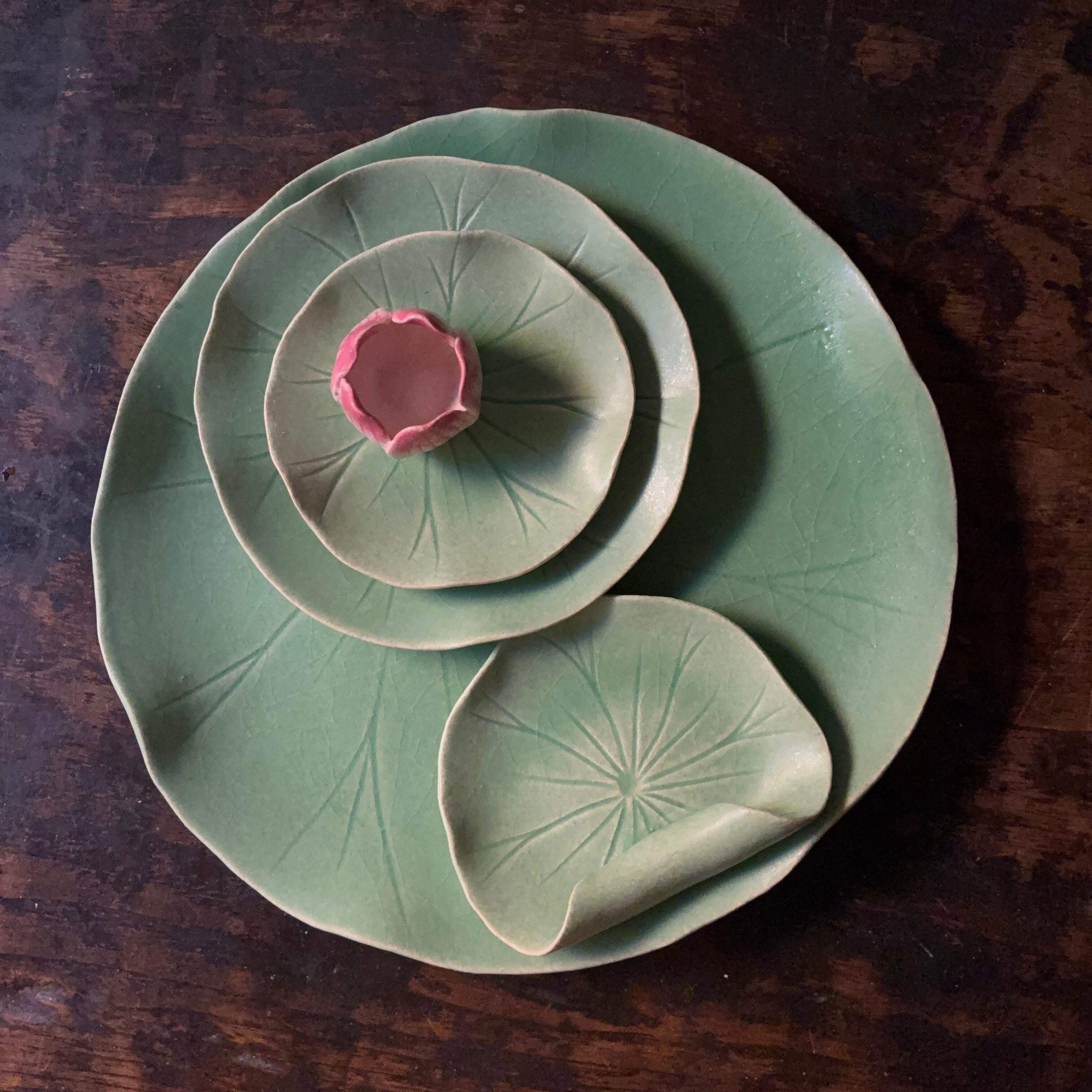 自然の蓮の葉が持つやさしさと静けさを、器の上にそのままうつしとるように、ていねいに形をととのえました。