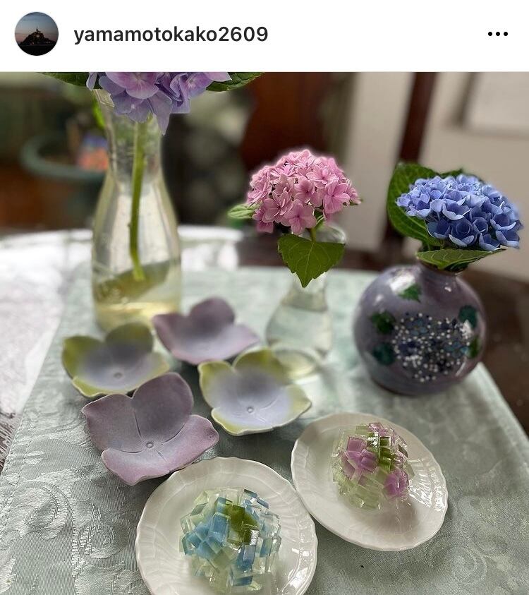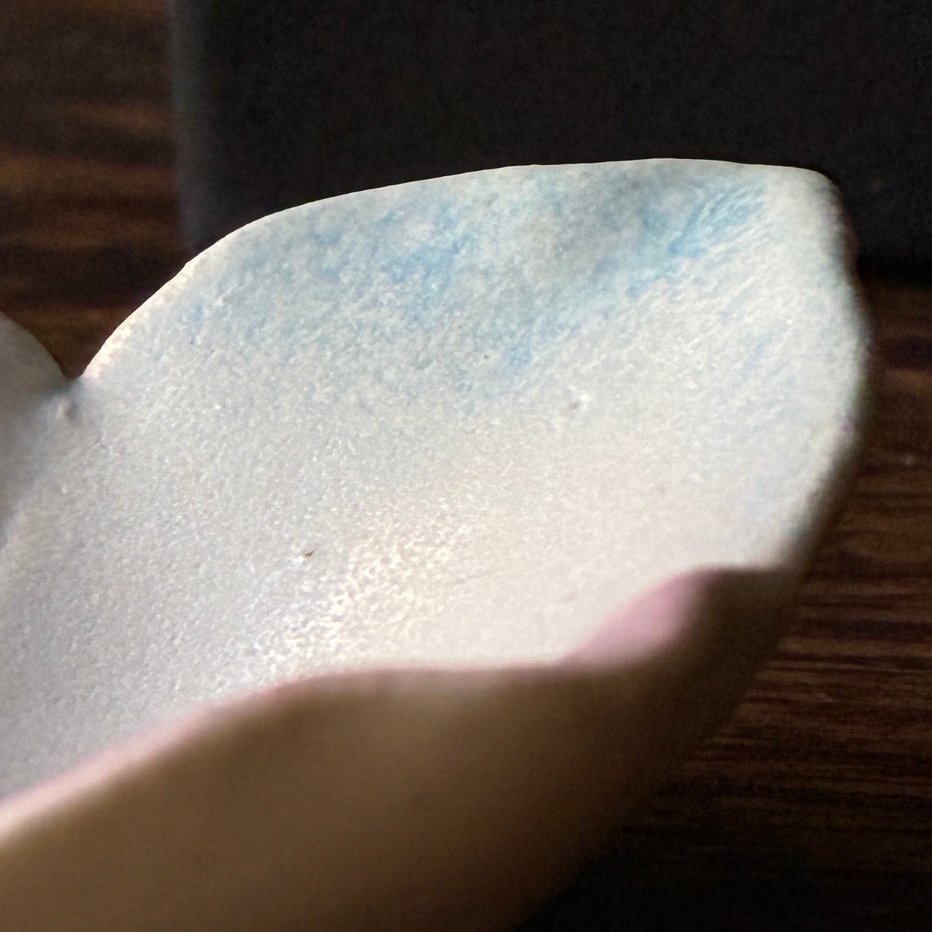 手のひらに収まる小さな器は、和菓子やお漬物、薬味をのせるのにちょうどよいサイズ感。淡いブルーやピンクは、雨の中でも心を和ませてくれるような、柔らかで自然な彩りです。