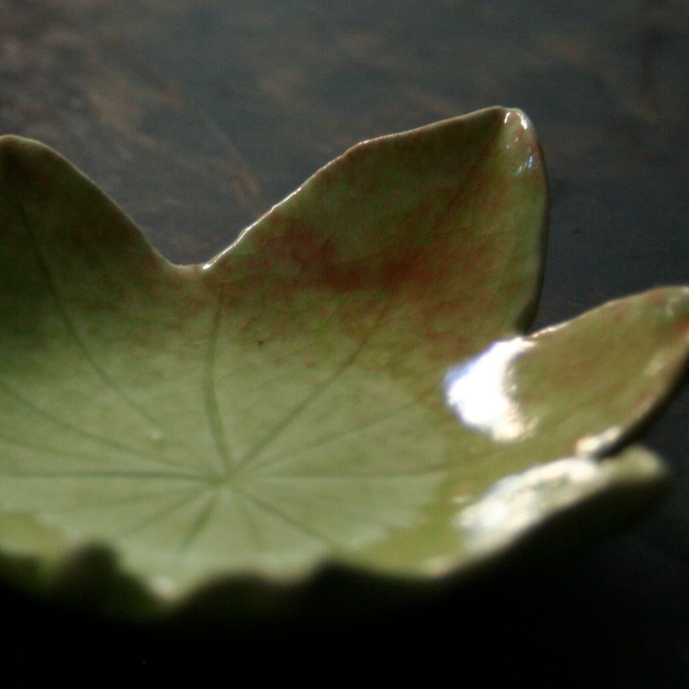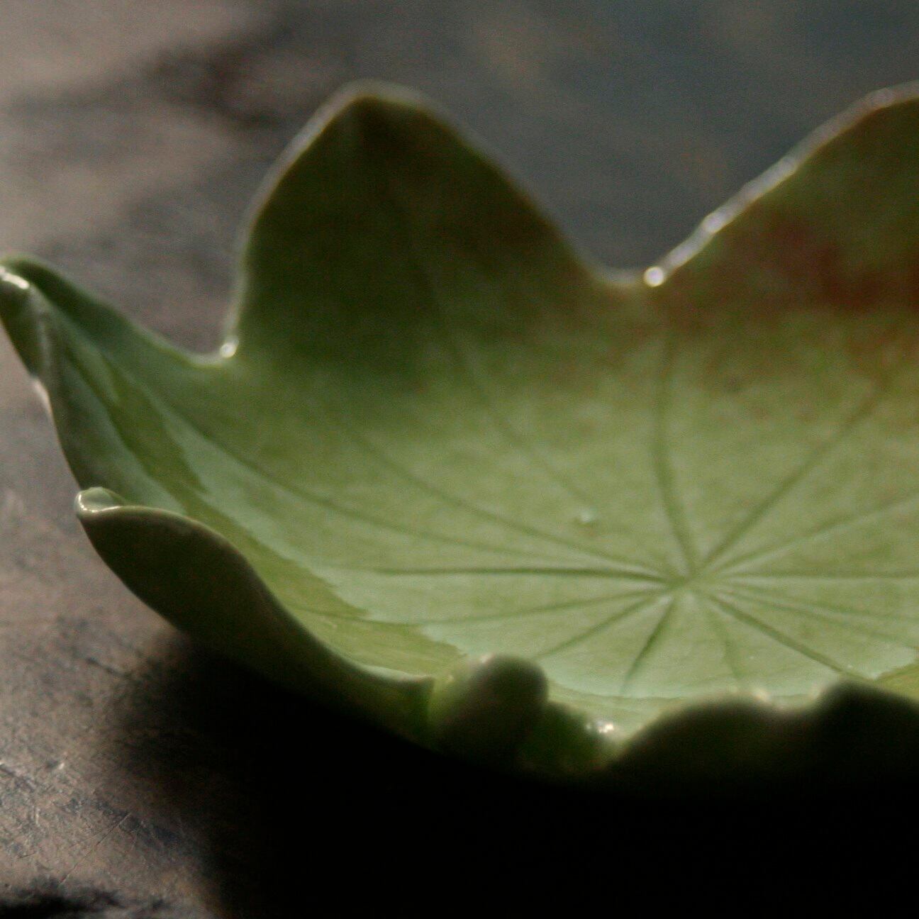 掛かり具合や、窯の中での火のあたり加減によって、本物の葉っぱのように、1枚1枚色の出具合が異なる仕上がりに。
