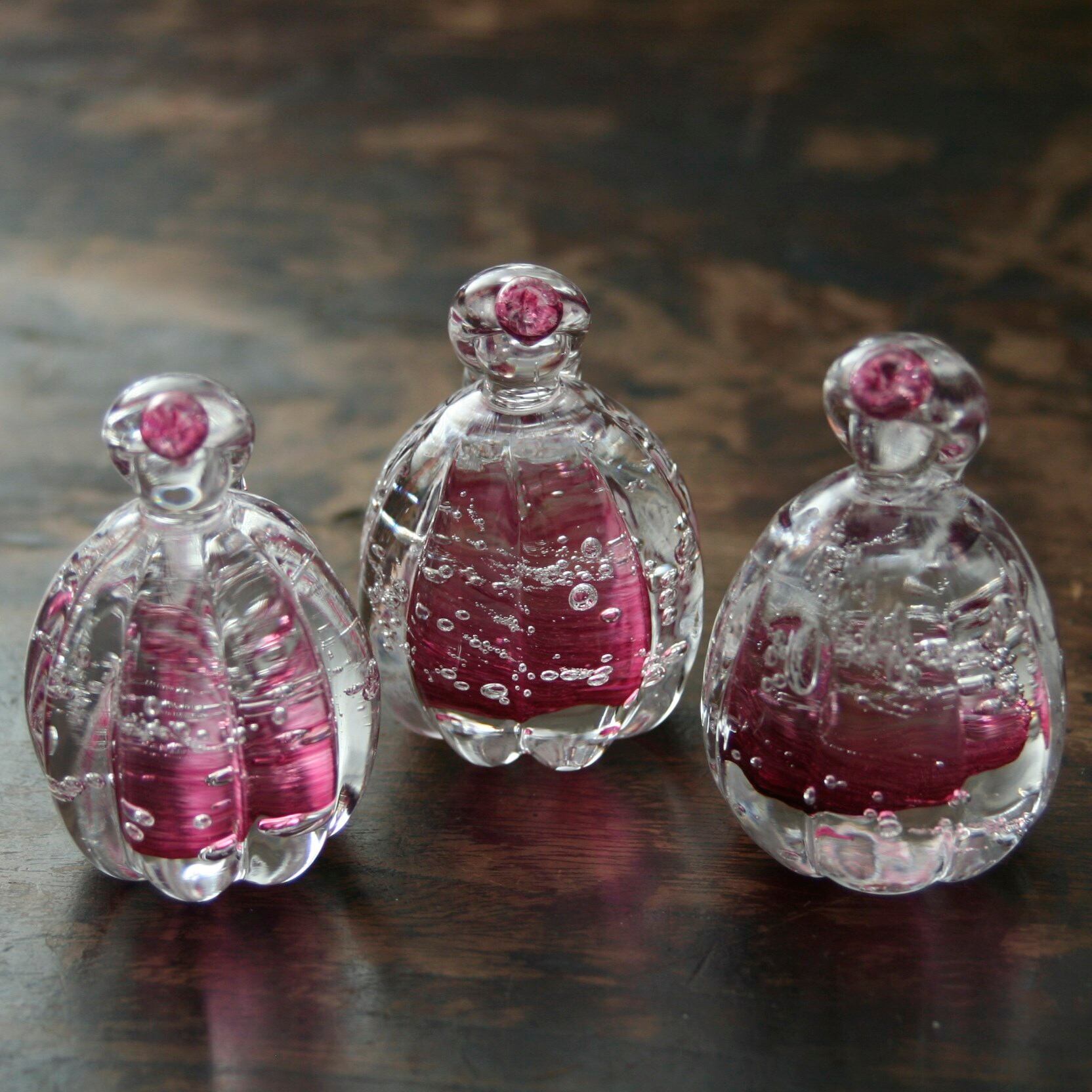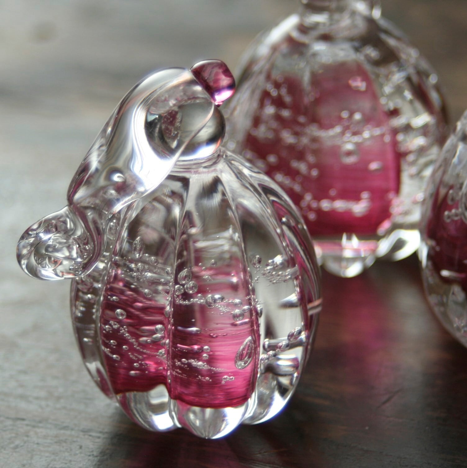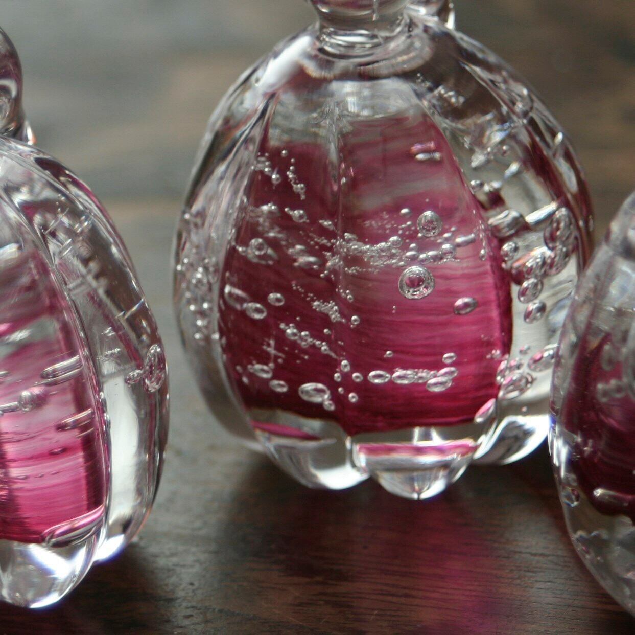 透明なガラスなので、木目の上に飾れば、優しく。
