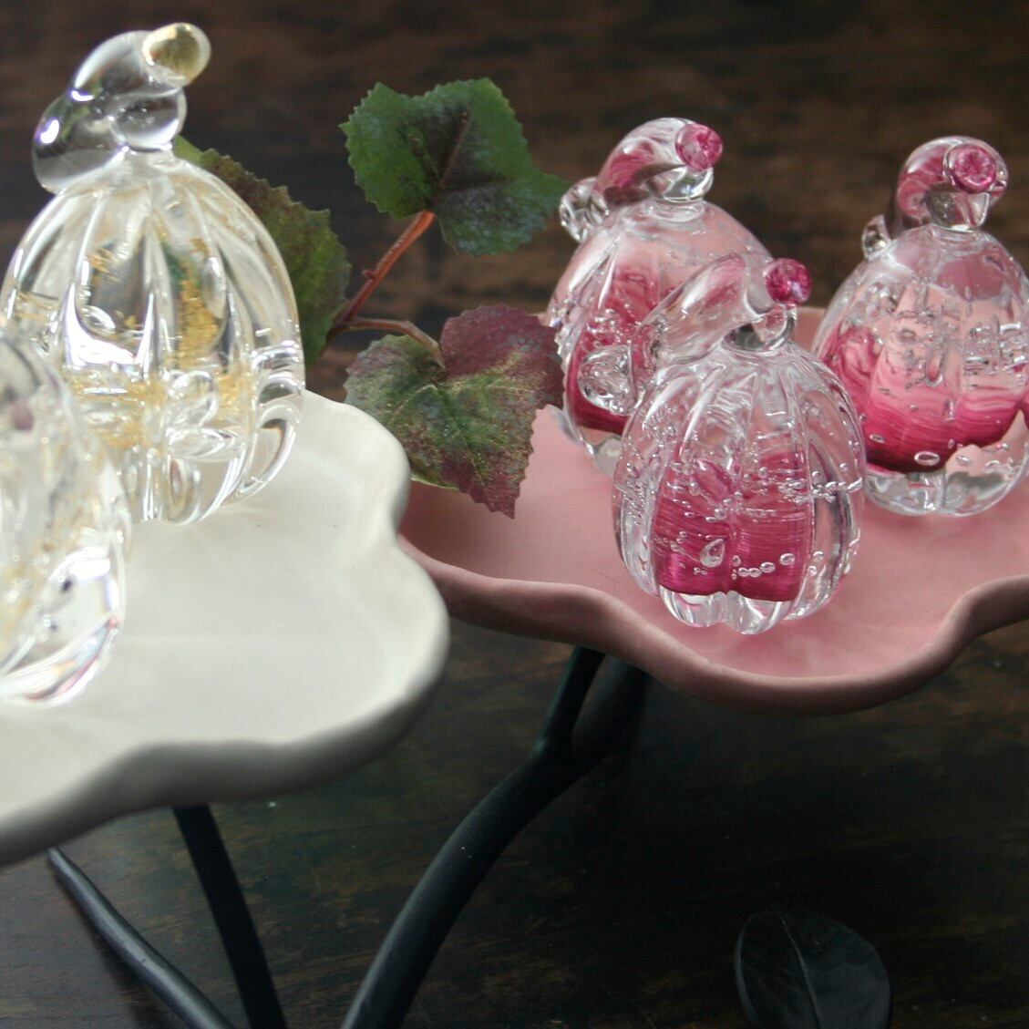 金箔入りのガラスで作られた三人官女。