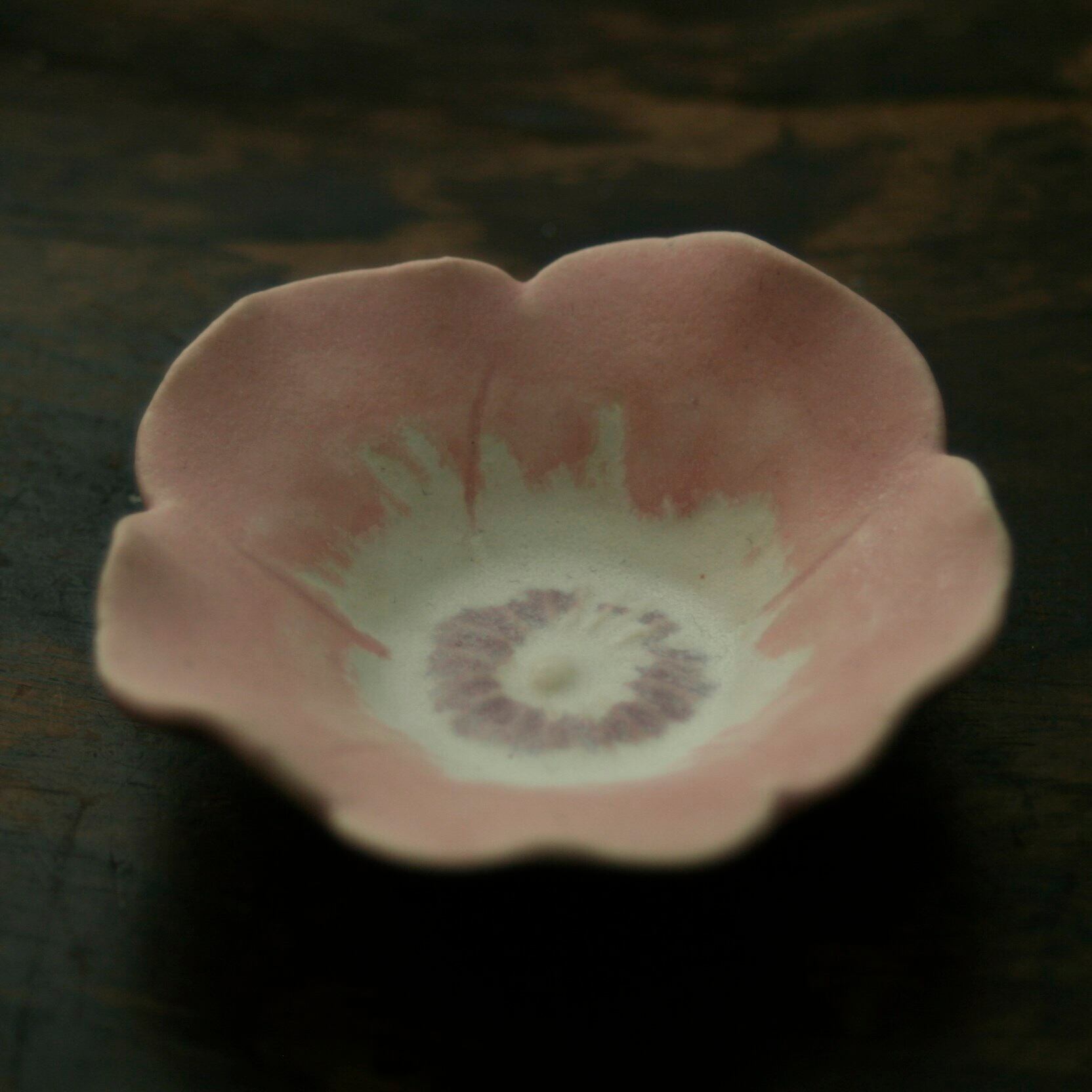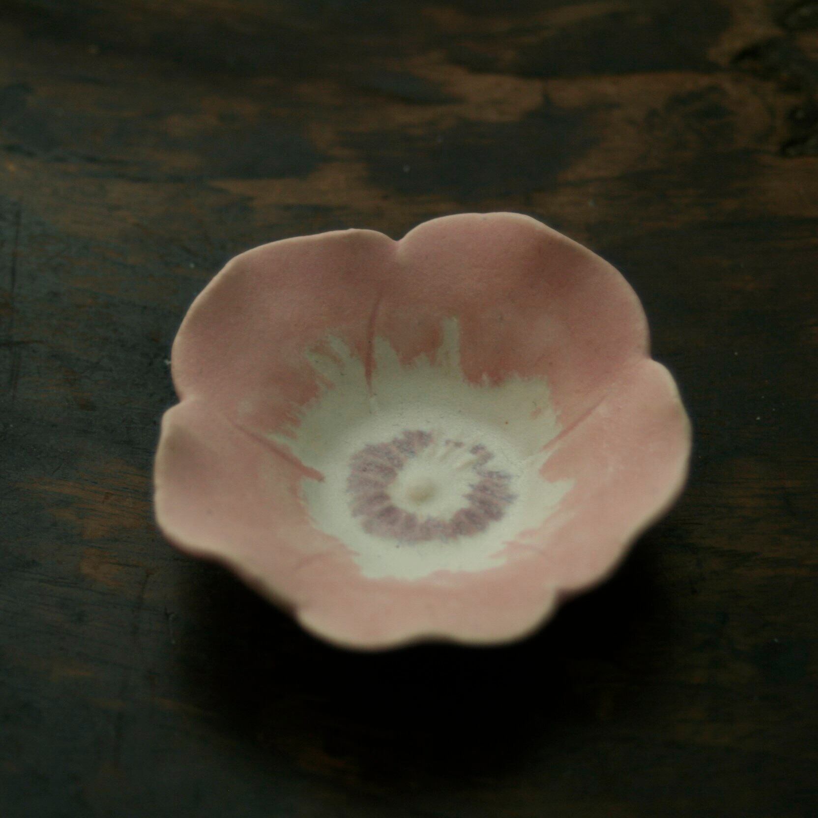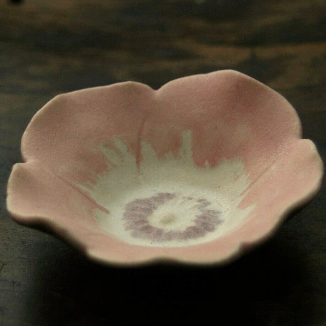 花豆皿 アネモネ ピンク (幅 7 cm) Anemone flower