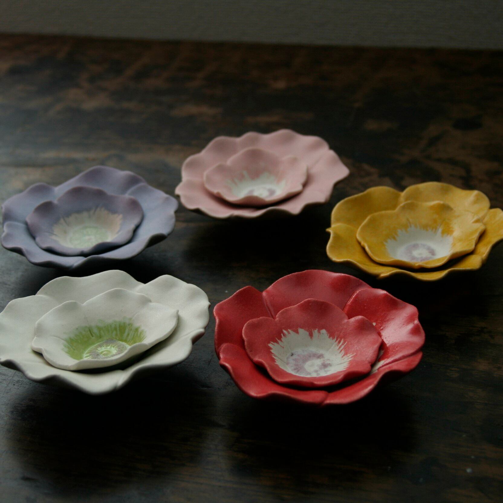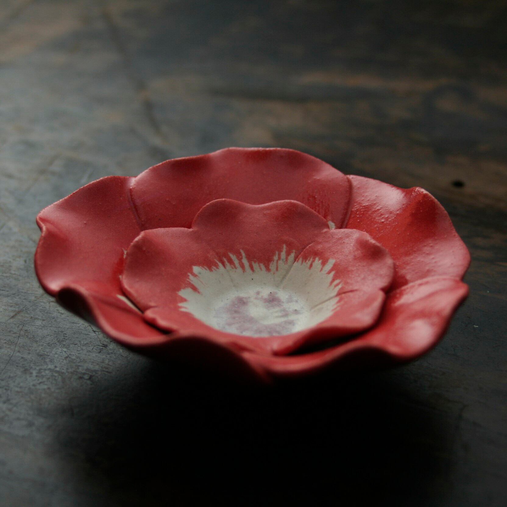 花豆皿 アネモネ 赤 (幅 7 cm) Anemone flower