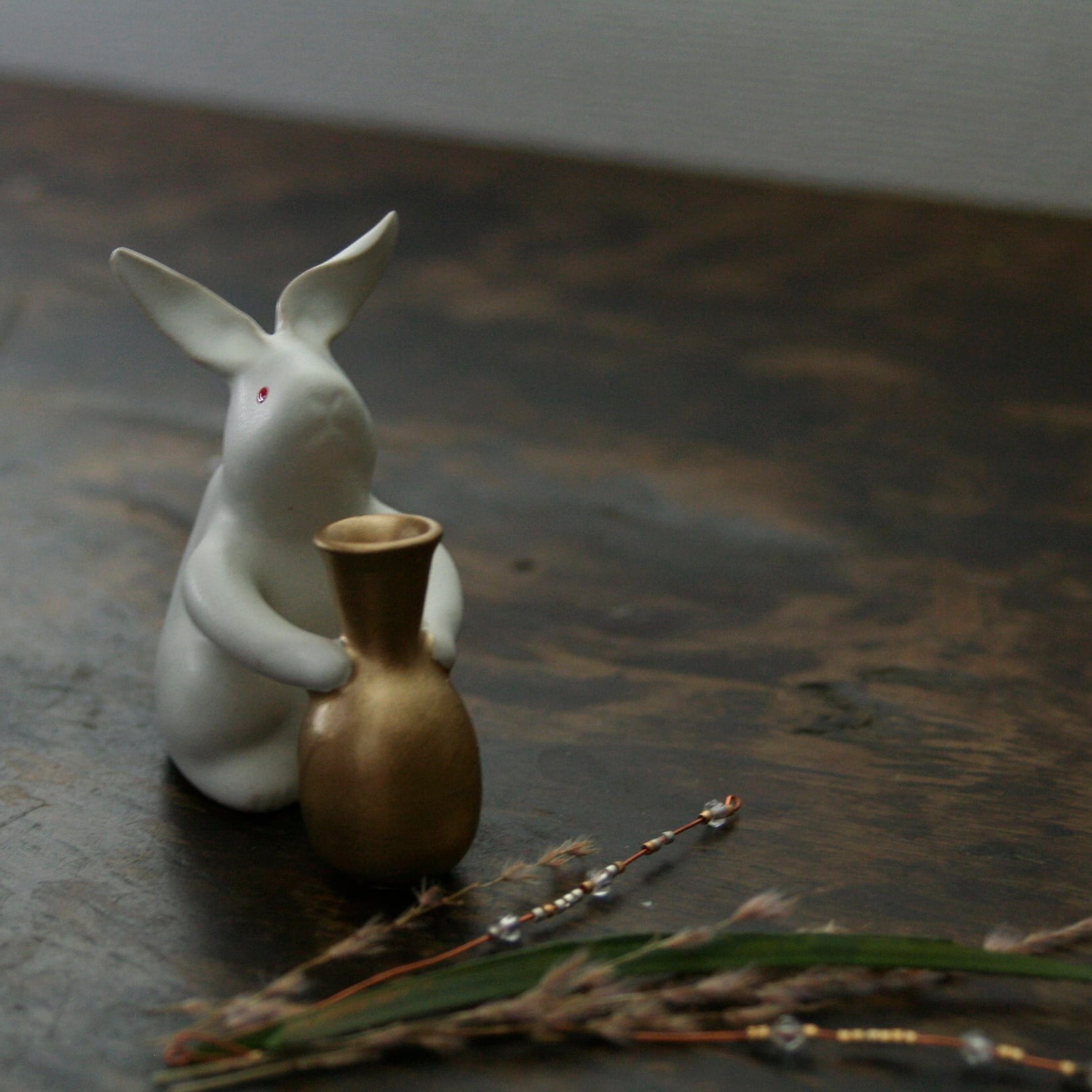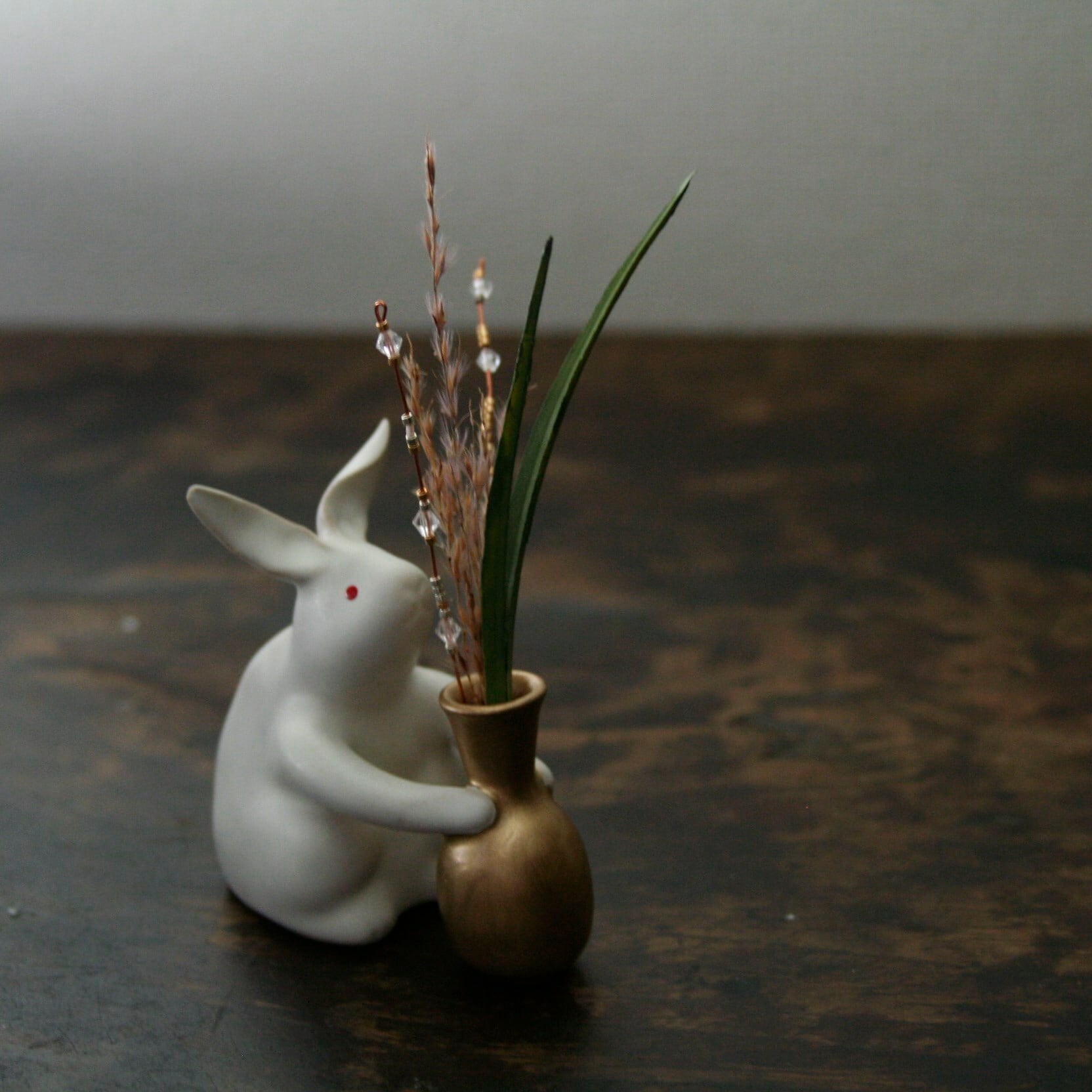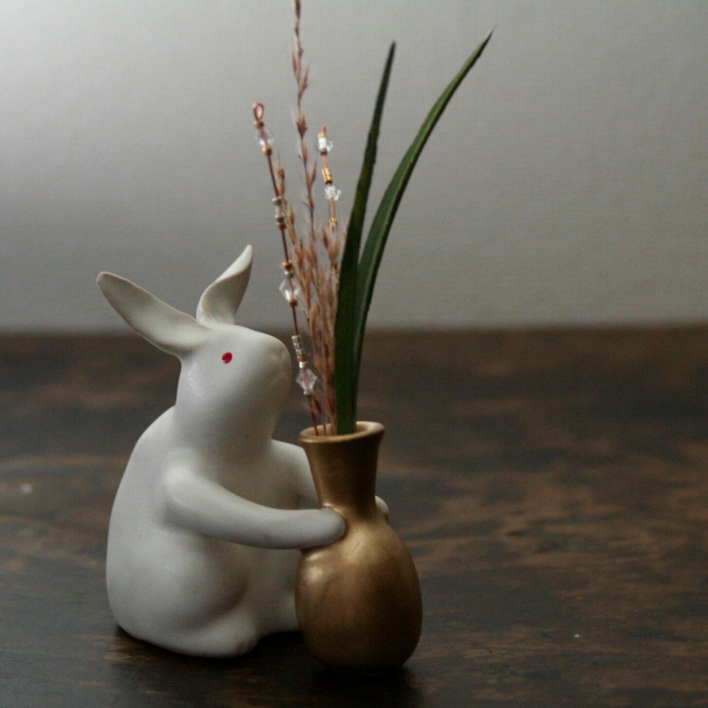 【'23秋】【ススキ飾り付】Rabbit うさぎ 花瓶 ゴールド