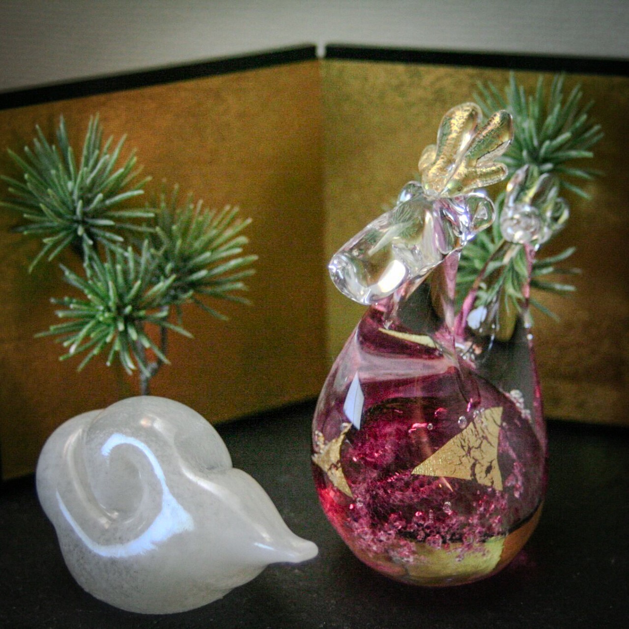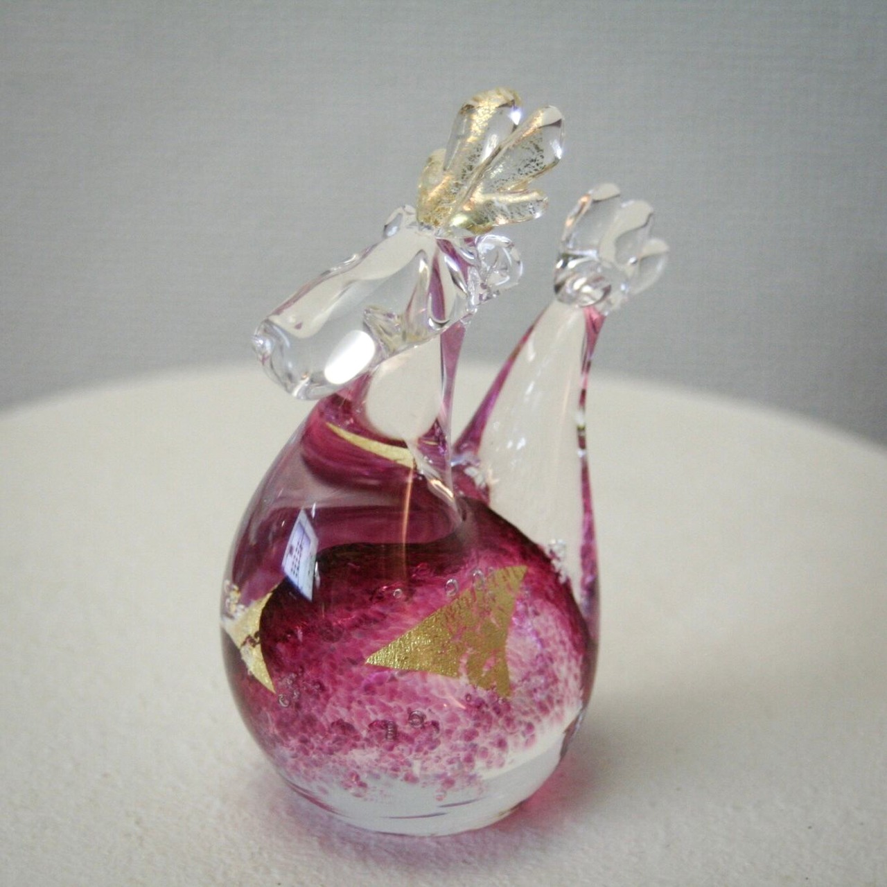 干支ガラス 辰 『親』 ピンク (高さ 10 cm)