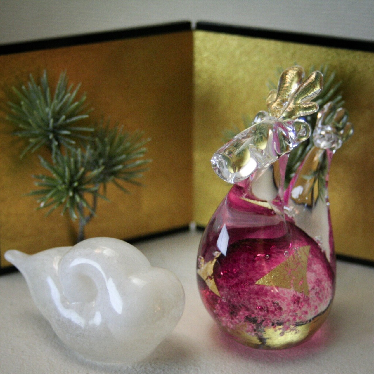 【‘23 迎春】干支ガラス 辰 『親』 ピンク (高さ 10 cm)