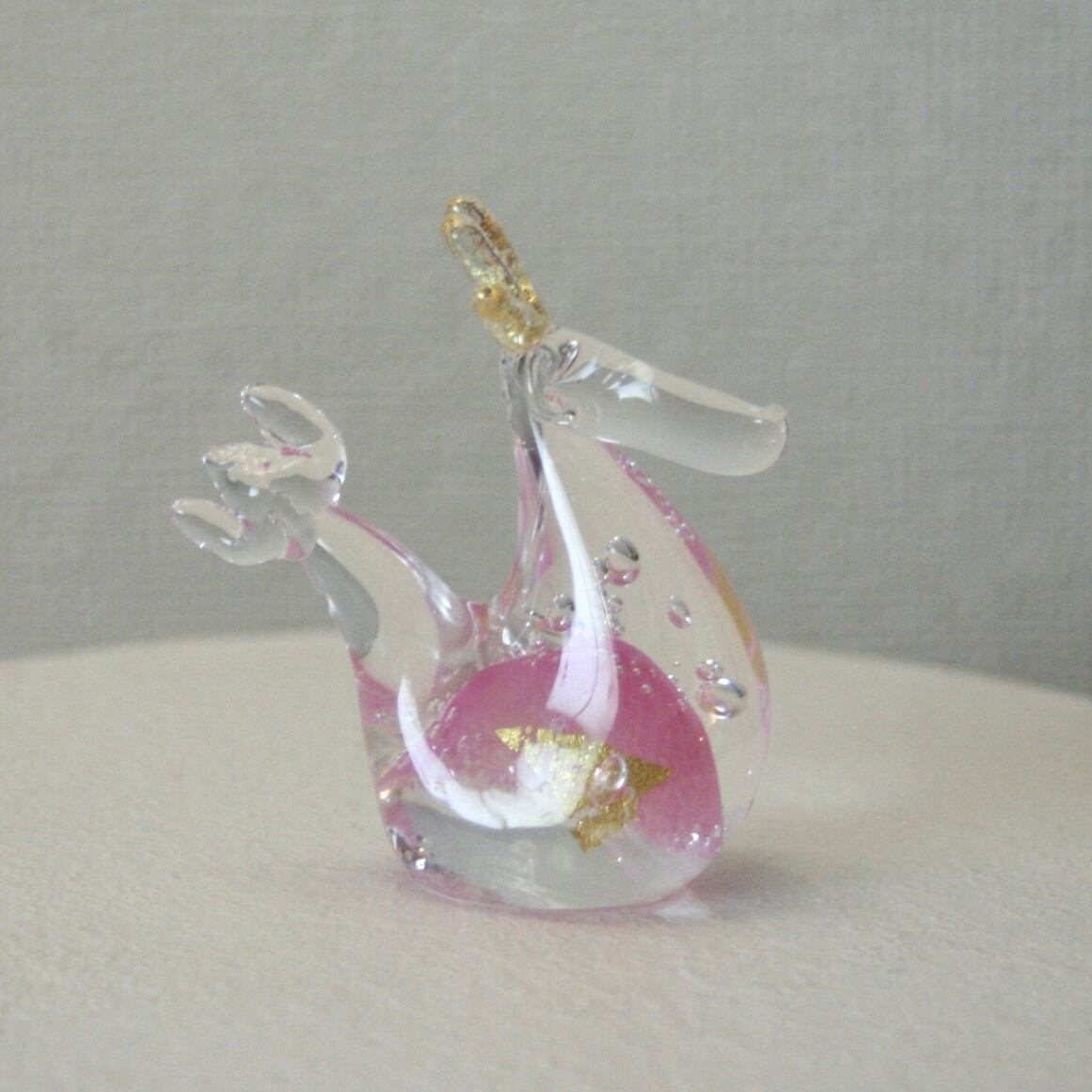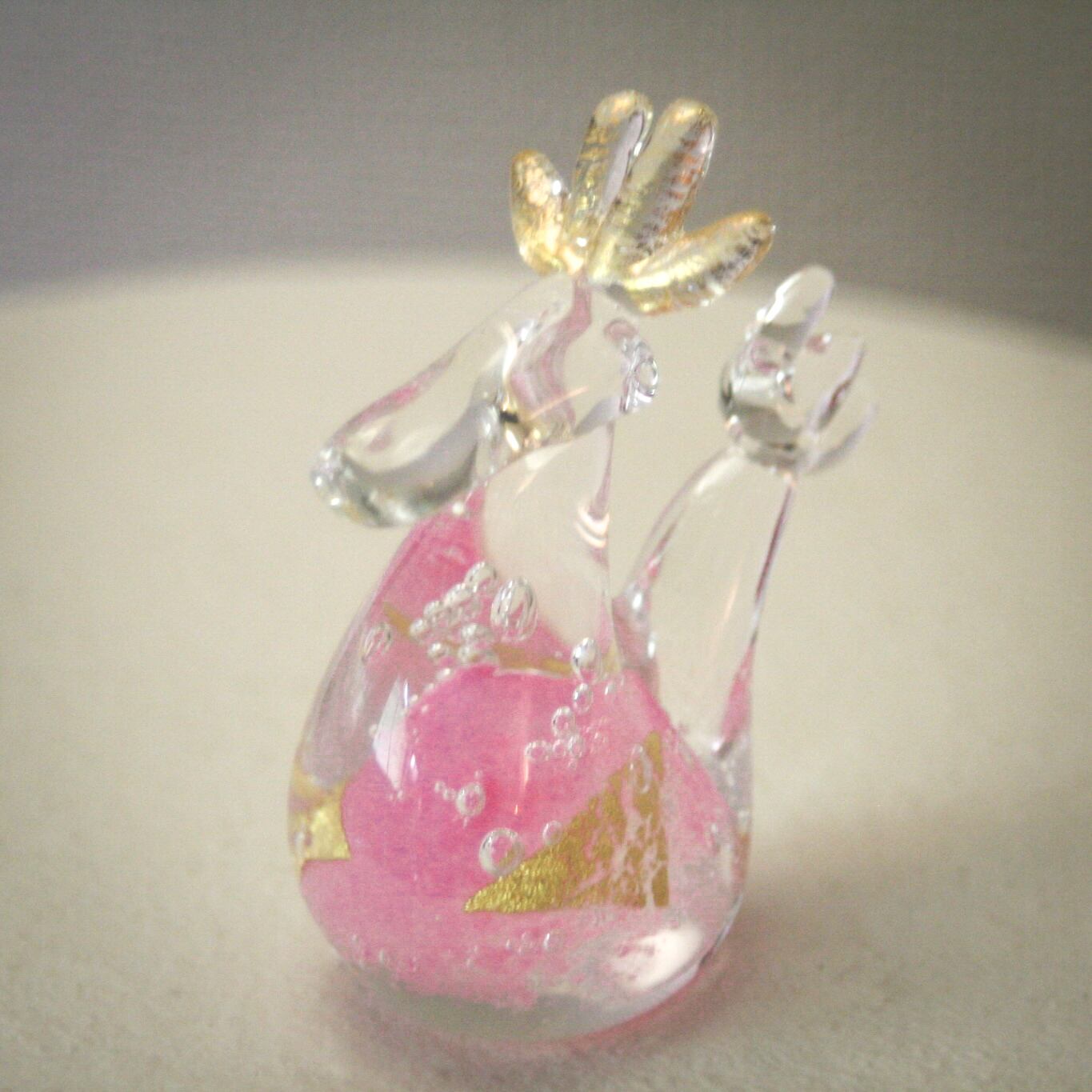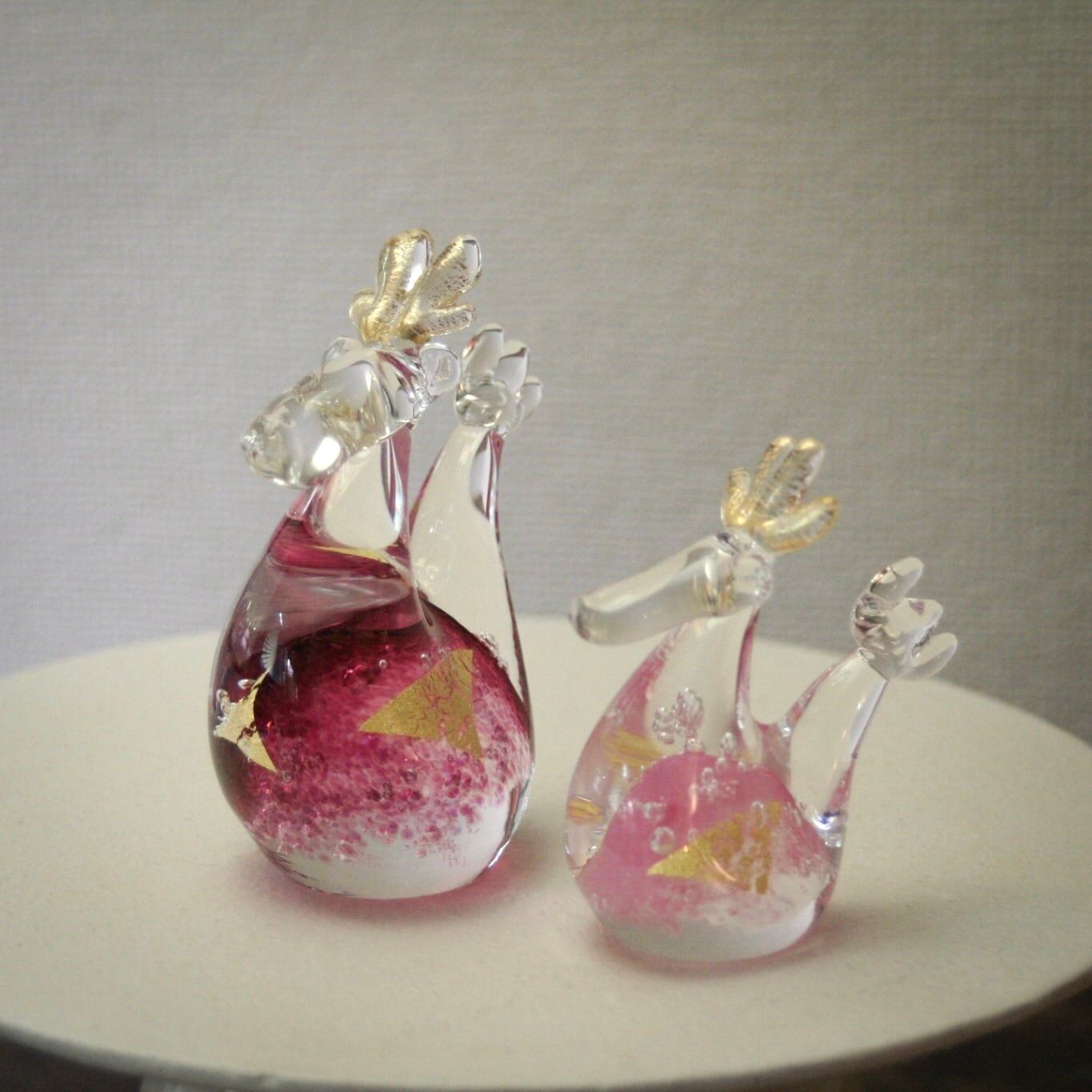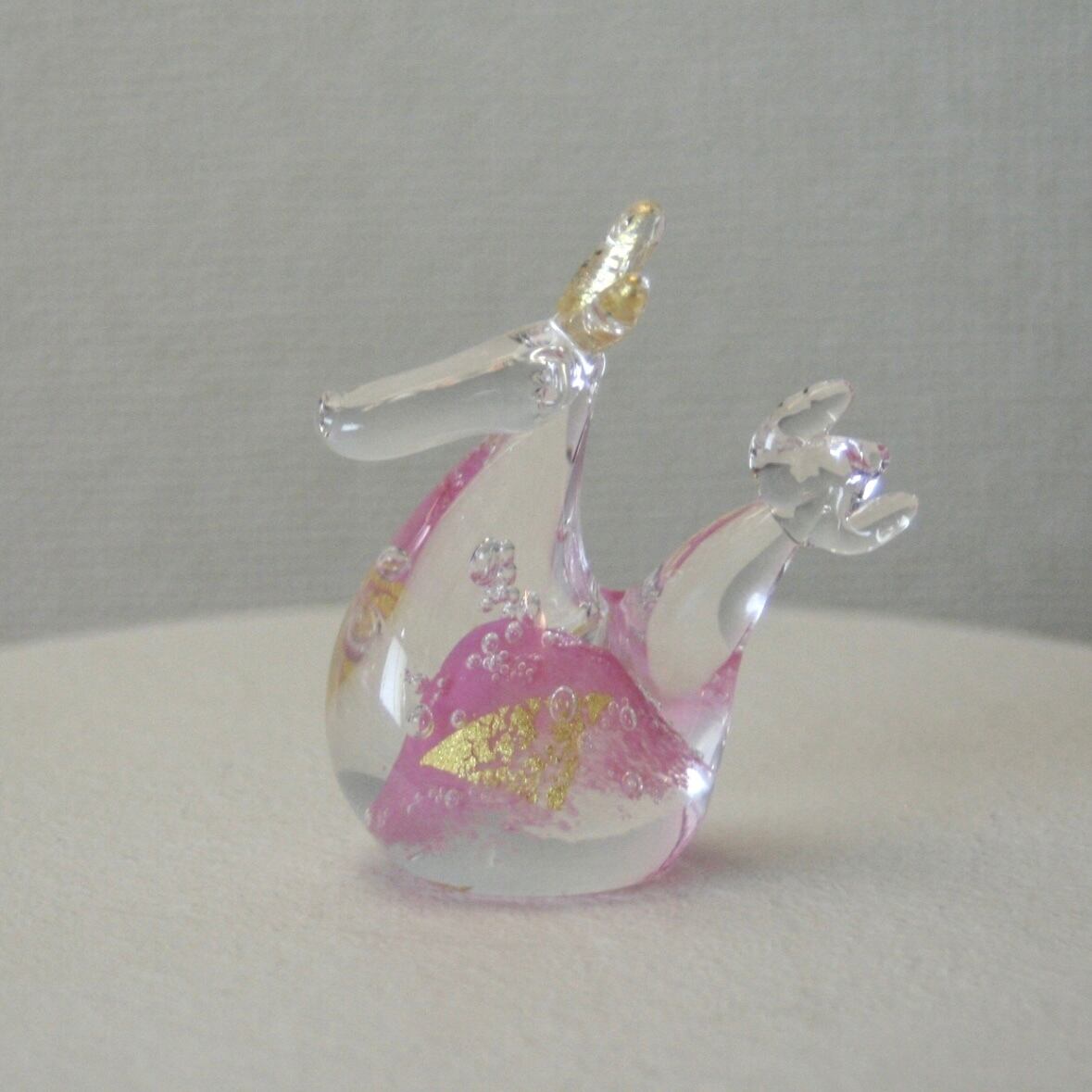 干支ガラス 辰 『親』 ピンク (高さ 10 cm)