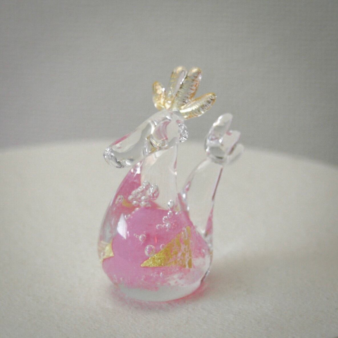 干支ガラス 辰 『子』 ピンク (高さ 8.5 cm)