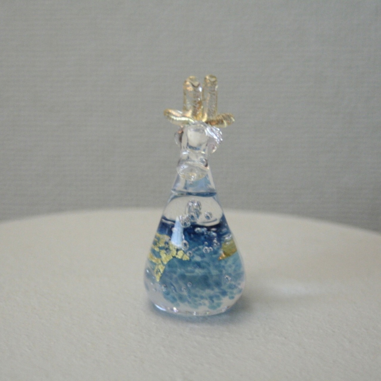 干支ガラス 辰 『子』 ブルー (高さ 8.5 cm)