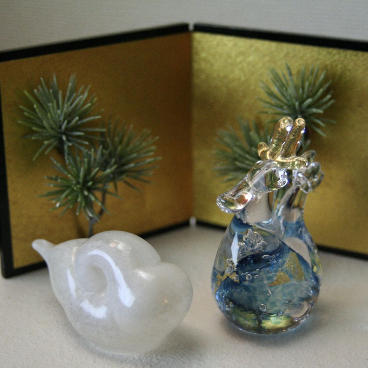 干支ガラス 辰 『親』 白 (高さ 10 cm)