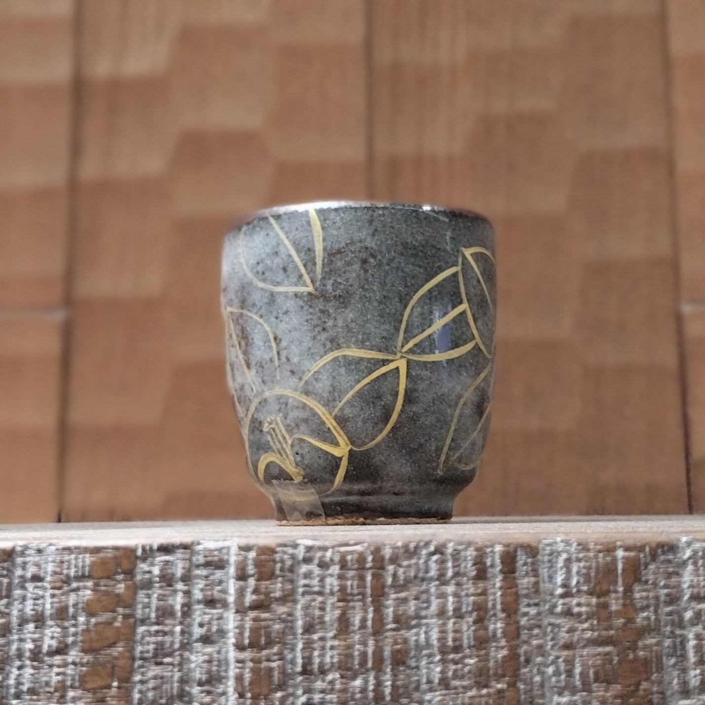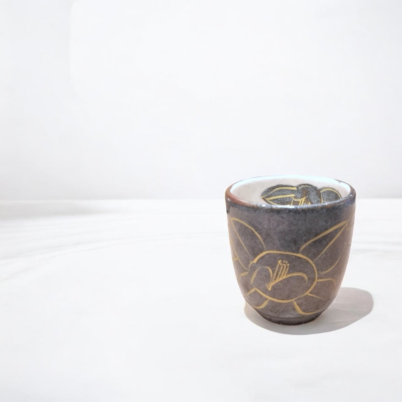 日本の伝統的な椿の花を、贅沢に金彩で描いた湯呑です。