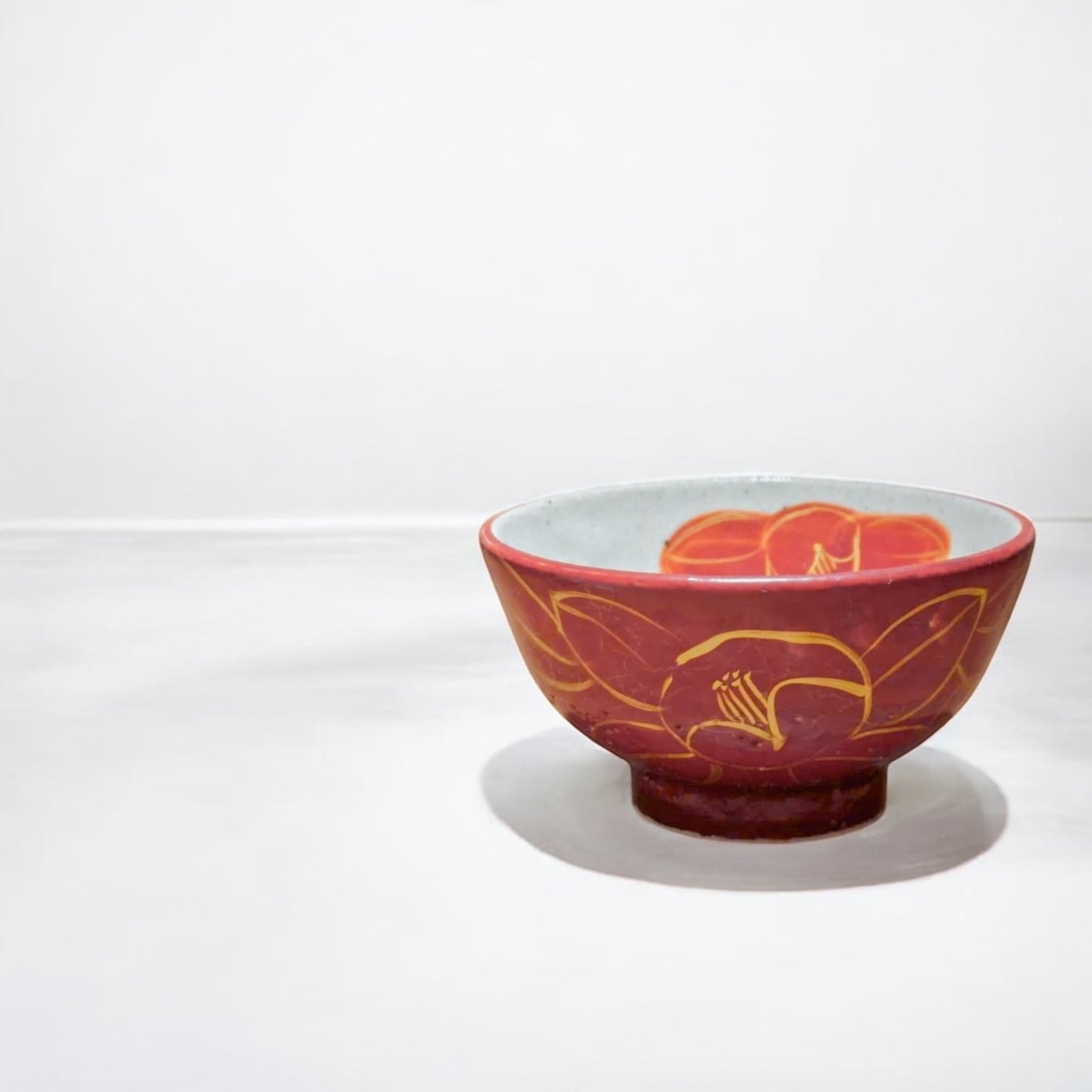 日本の伝統的な椿の花を、贅沢に金彩で描いた飯碗です。